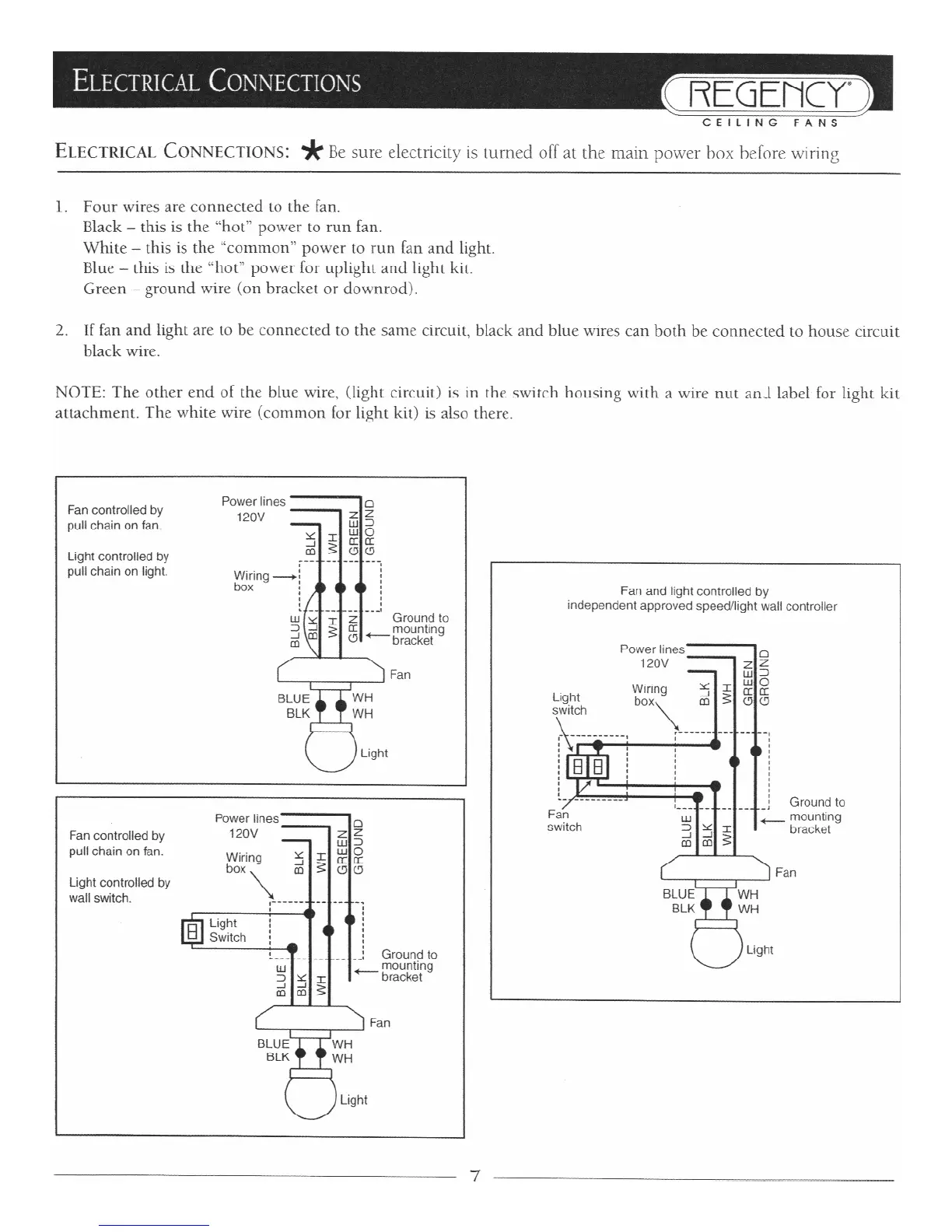 Regency Ceiling Fans Coronado - Electrical Connections