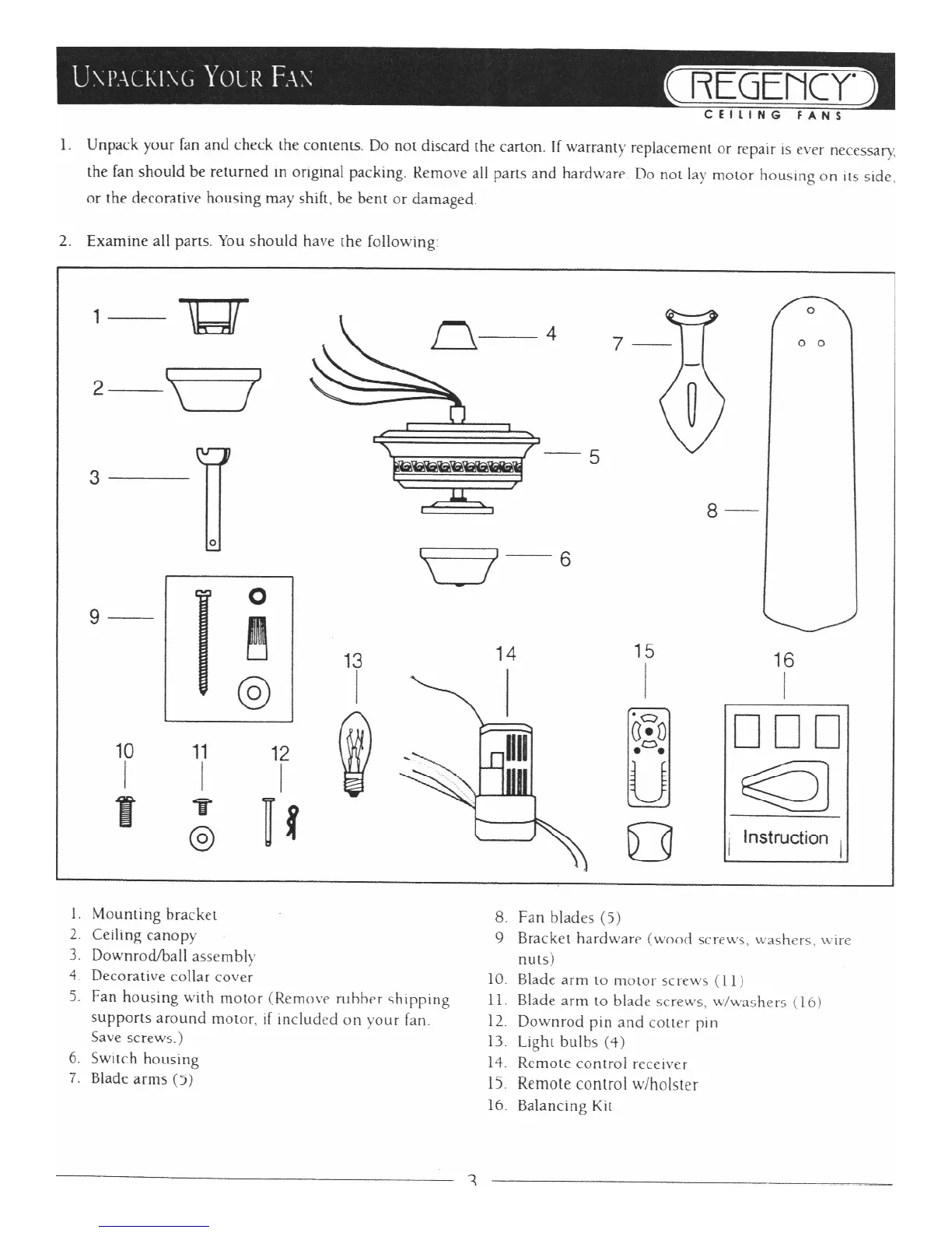 Regency Ceiling Fans Jasmine - Unpacking Your Fan