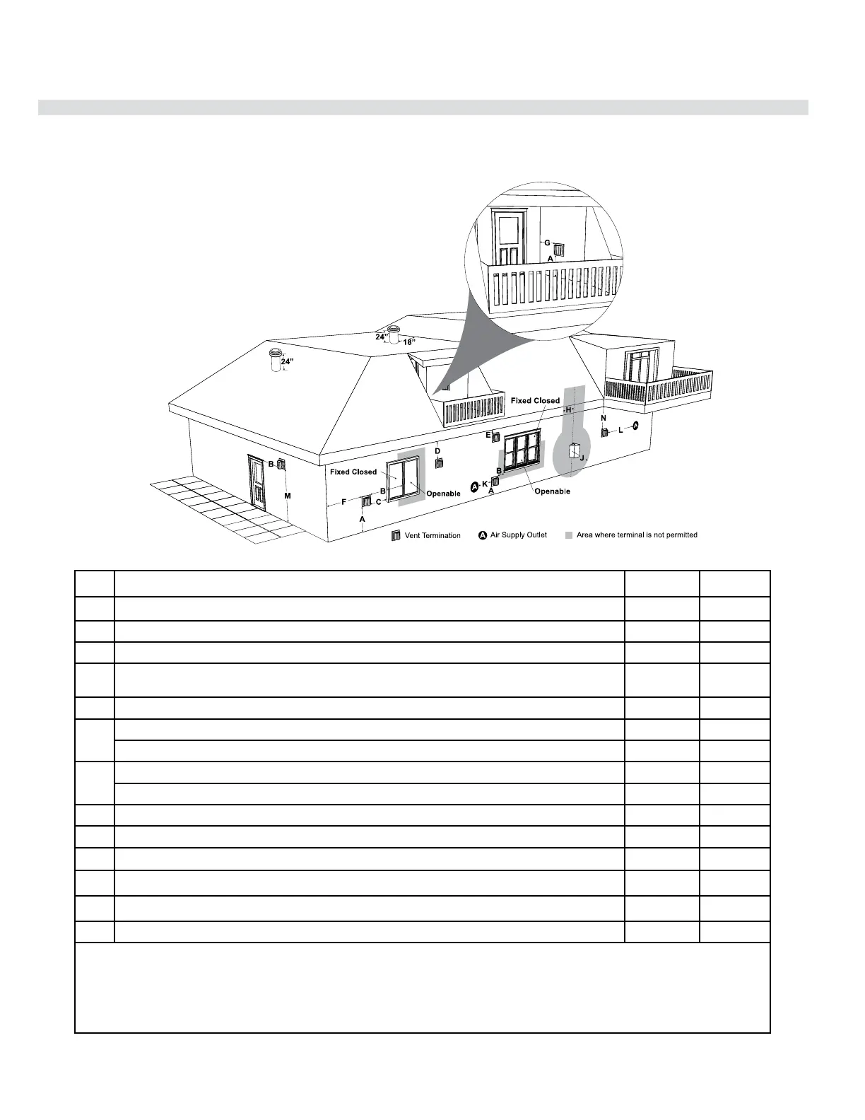 Clearance to window or door that may be opened 12"(30cm) 9" (23cm)