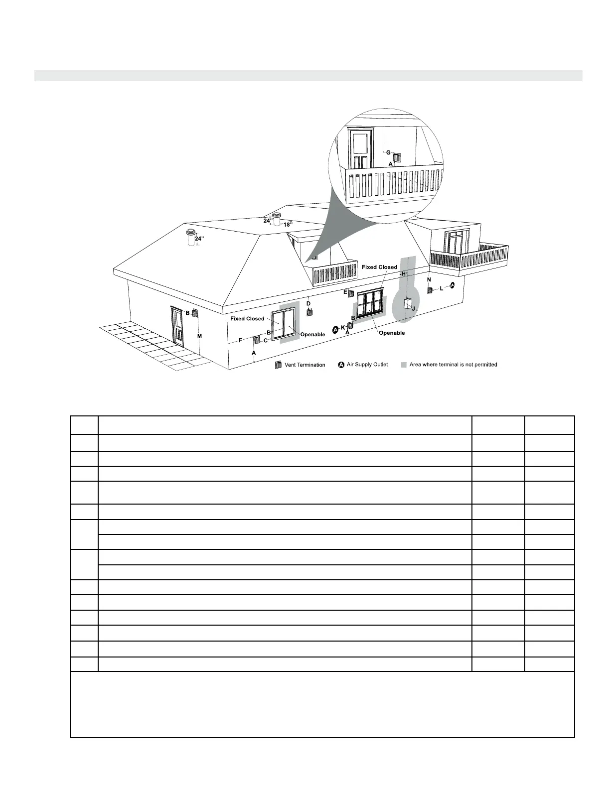 Clearance to window or door that may be opened 12"(30cm) 9" (23cm)