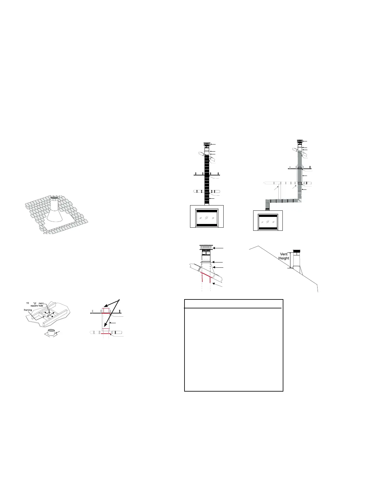 and sagging of the vent pipe. Wall straps are provided (3 in total)