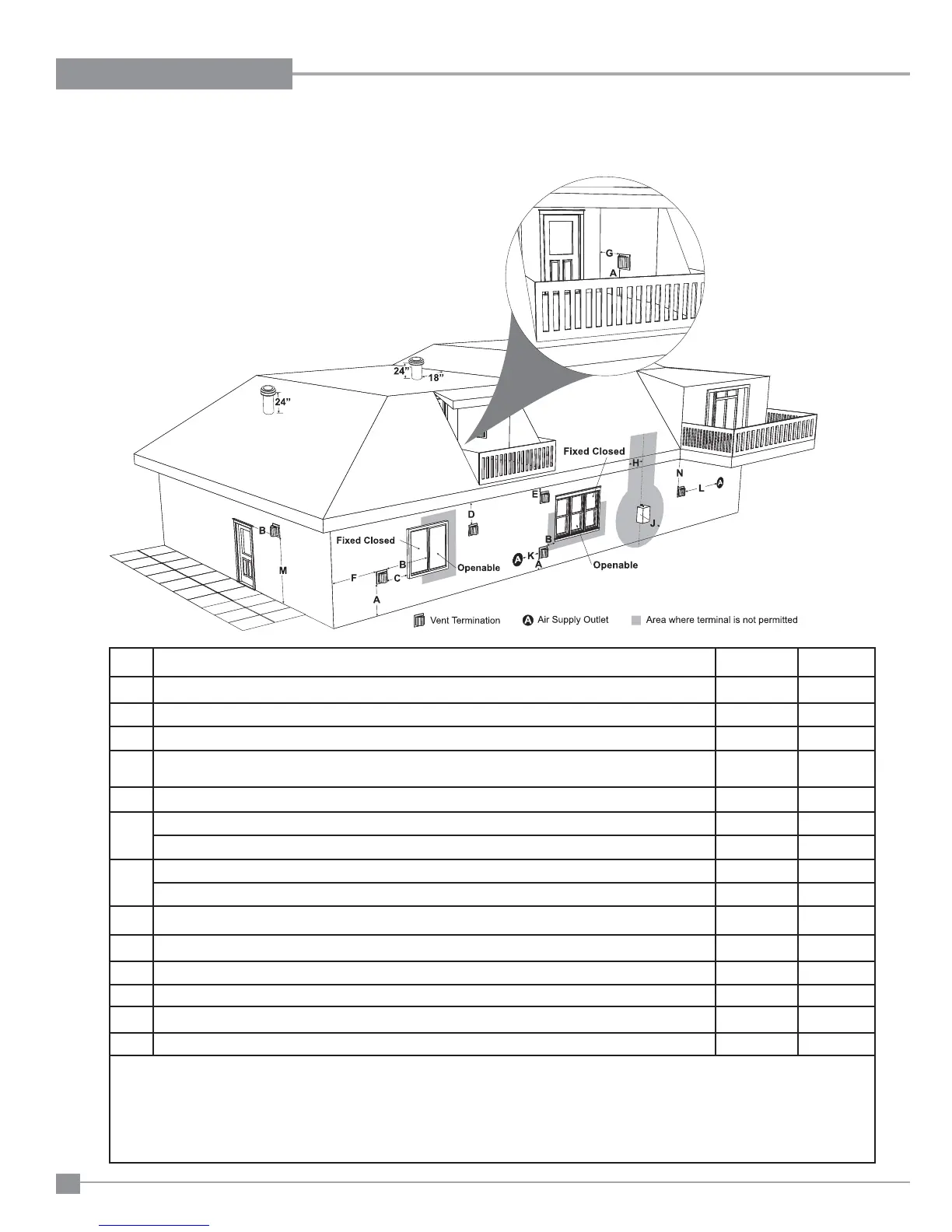 B Clearance to window or door that may be opened 12"(30cm) 9" (23cm)