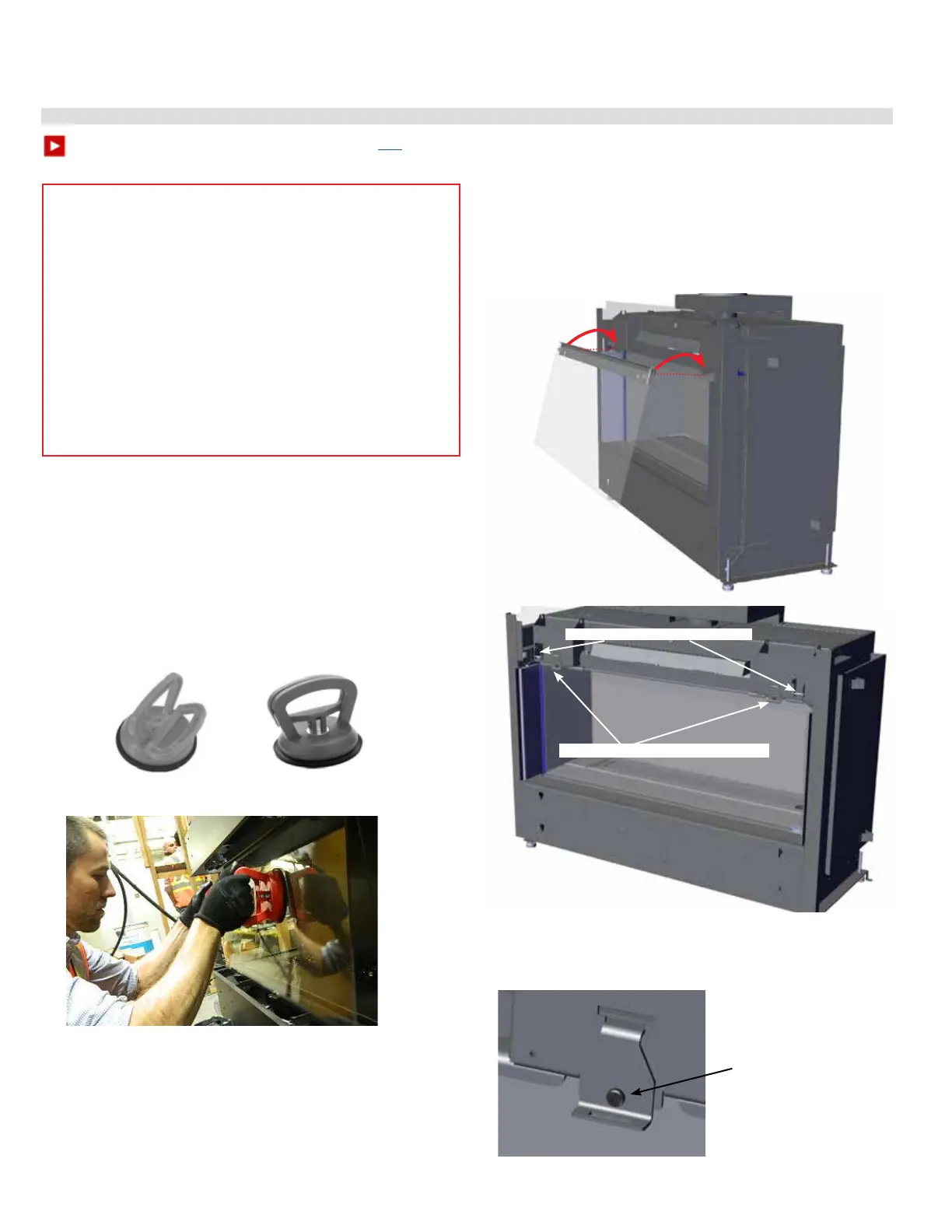 2. Using the supplied vacuum clamps, lift the large front glass panel and