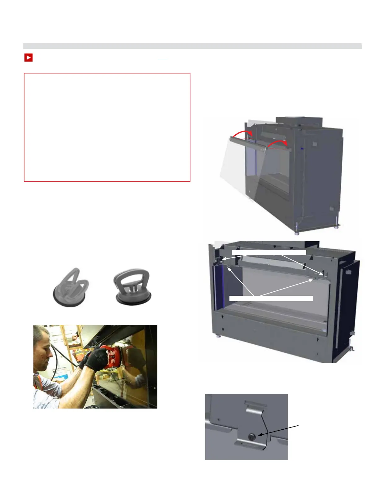 2. Using the supplied vacuum clamps, lift the large front glass panel and