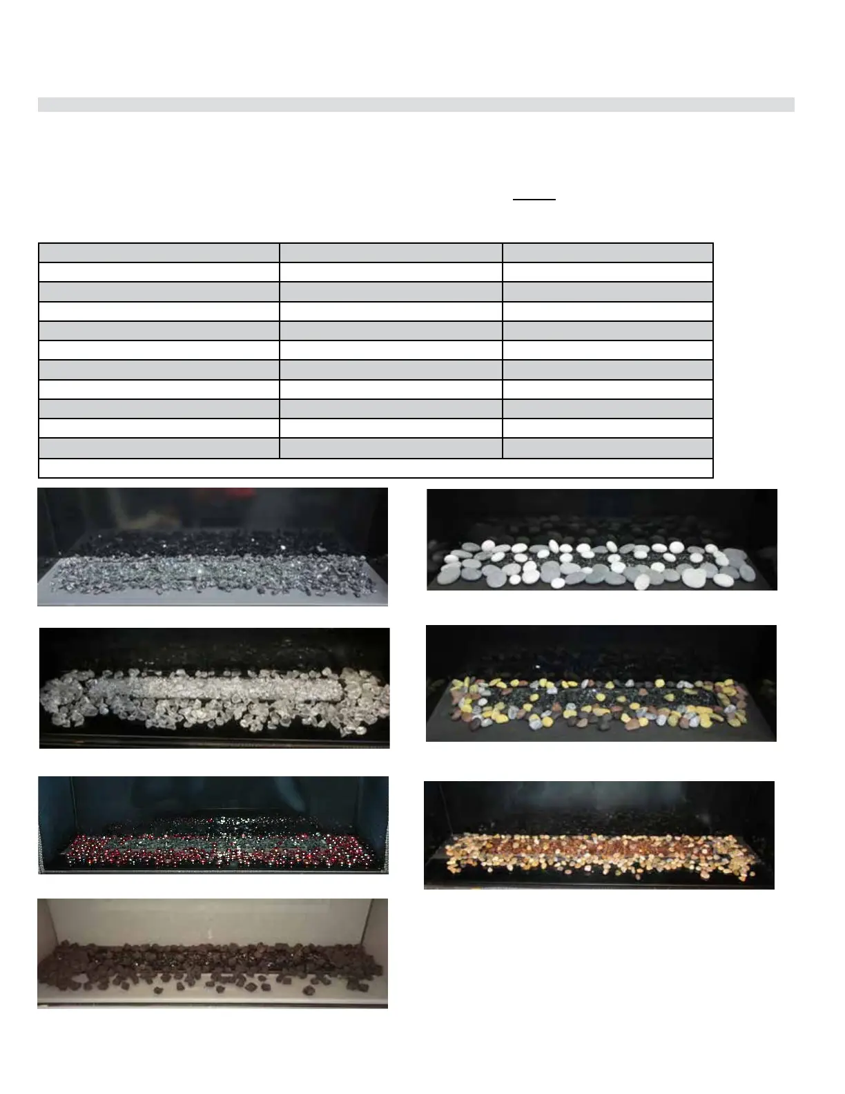 Spread the media evenly over the burner. Ensure the glass/stones do not overlap excessively as this will aect the ame pattern.