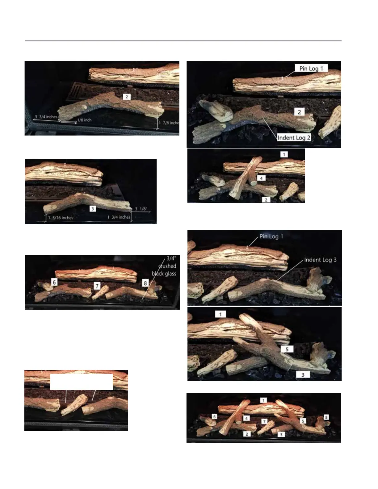 9. Place Log 6, Log 7 and Log 8 on the burner locations shown below.