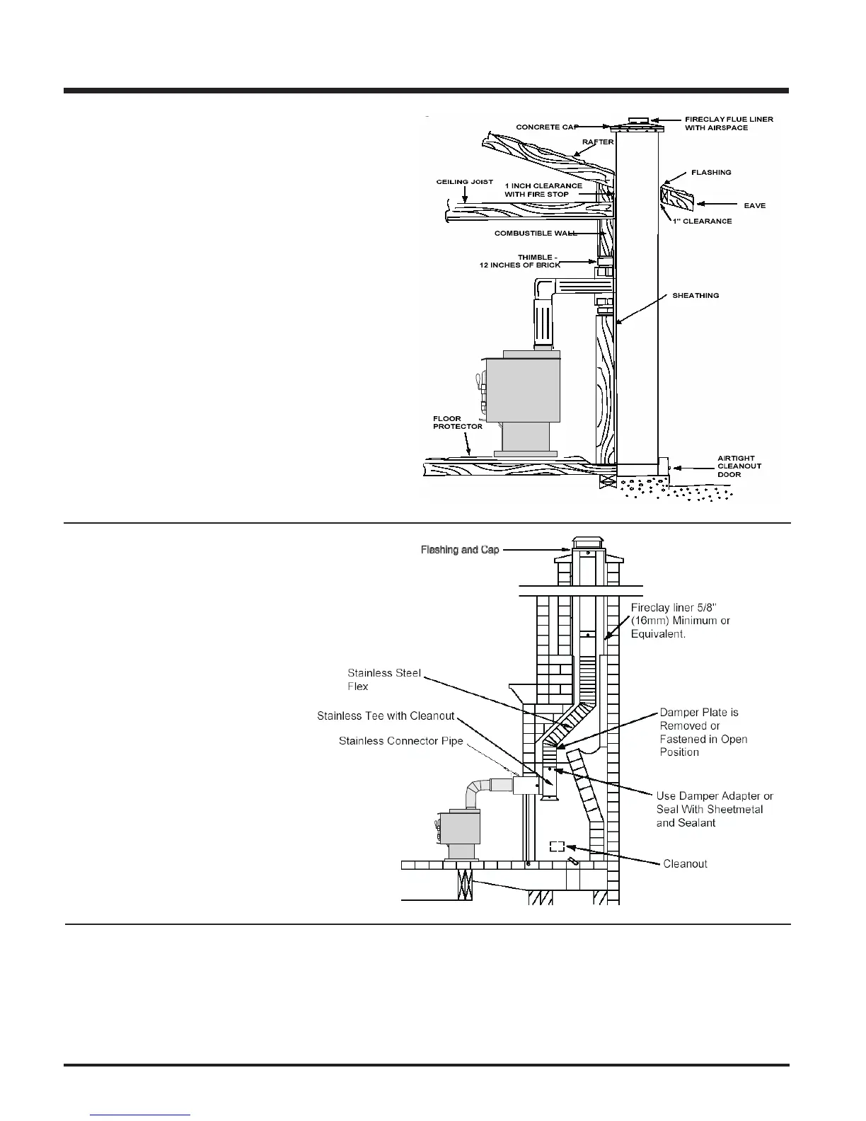 When a metal prefabricated chimney is used, the manufacturer's installation instructions must be followed. You must also purchase and install the