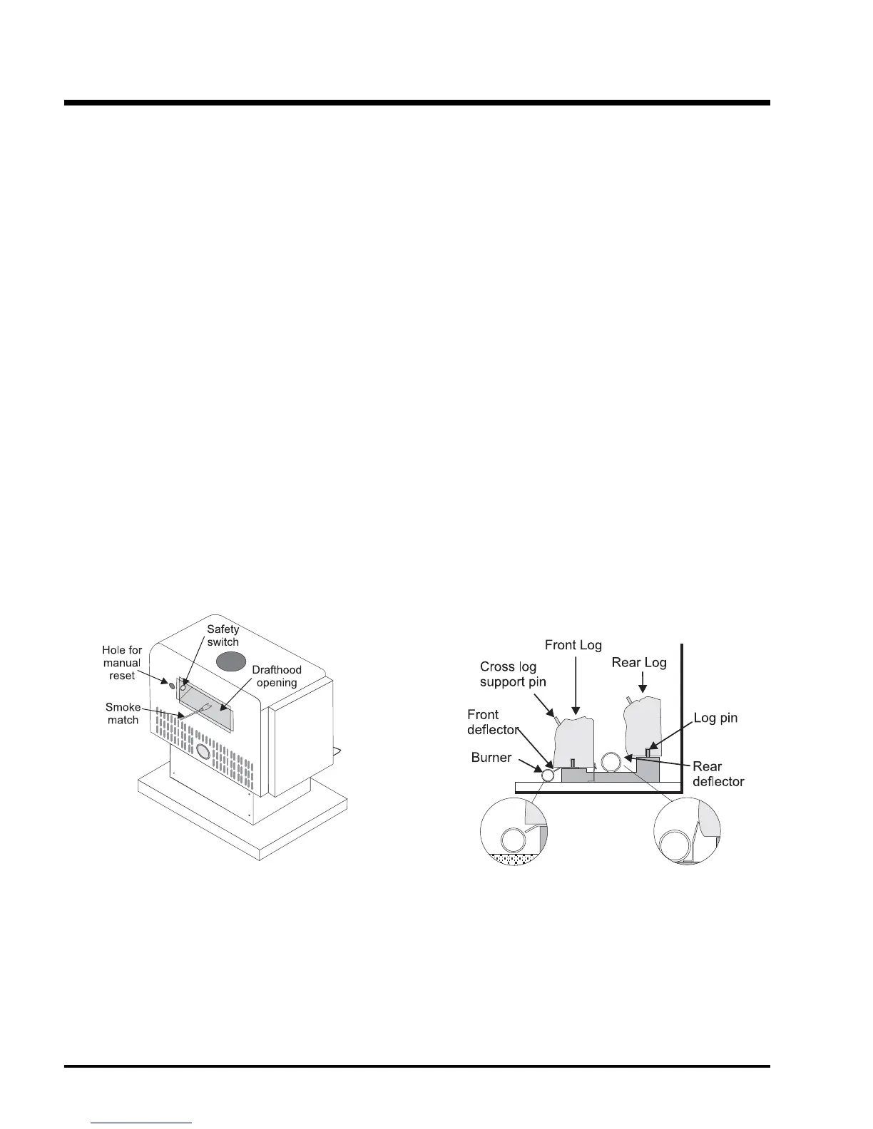 4) Ensure the front defl ector is over front log pins. See diagram 1.