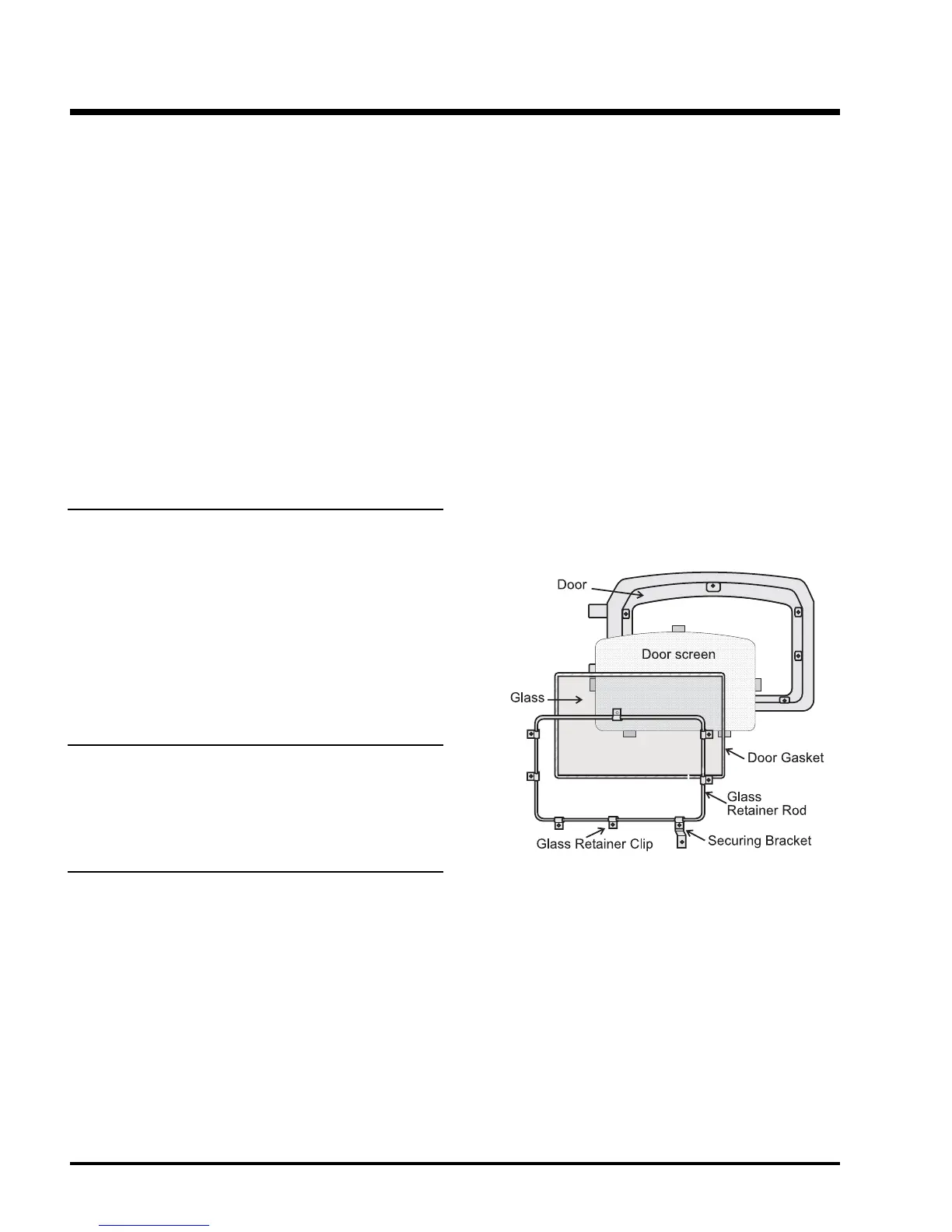 9) Position the glass retainer clips and door securing bracket. Secure