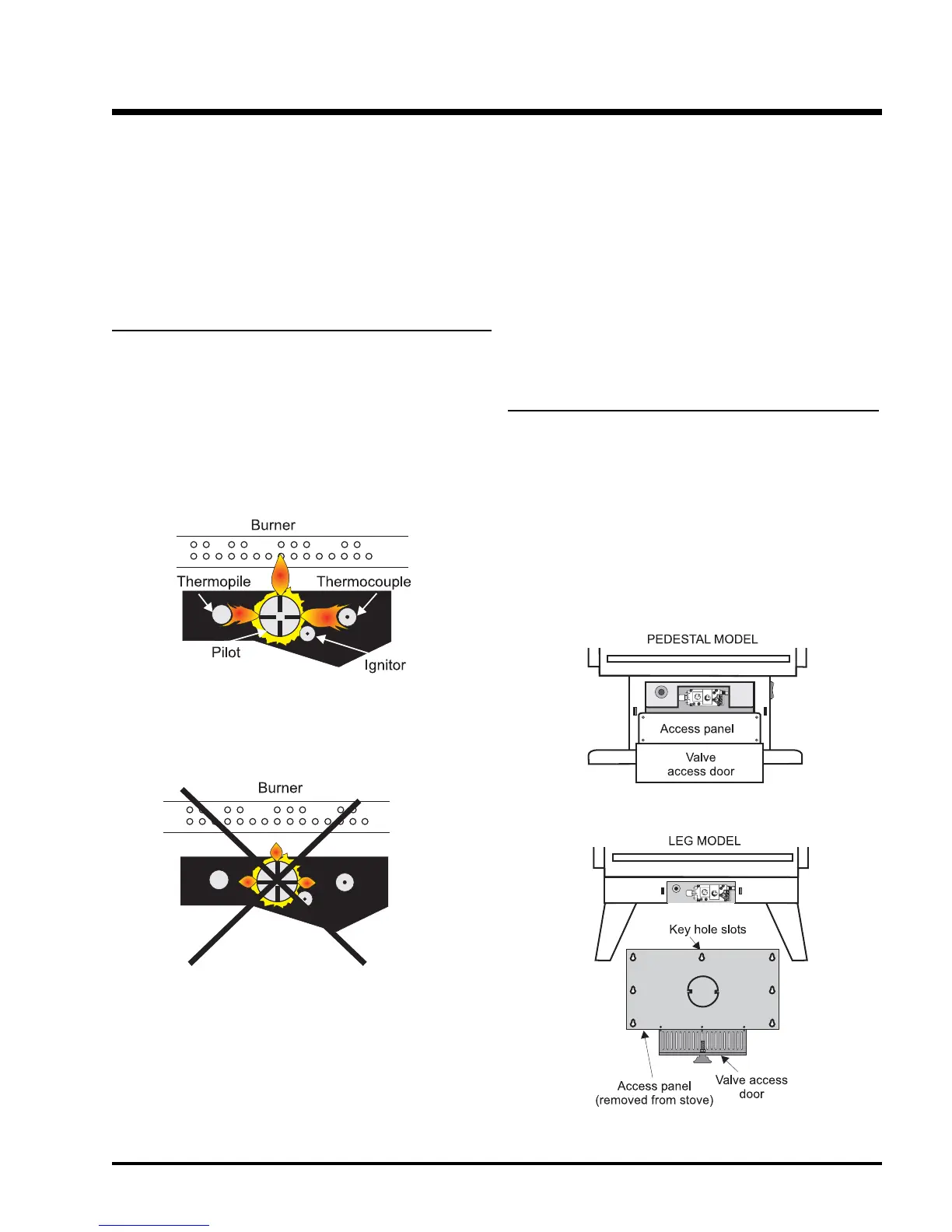 Periodically check the pilot fl ames. Correct fl ame pattern has three