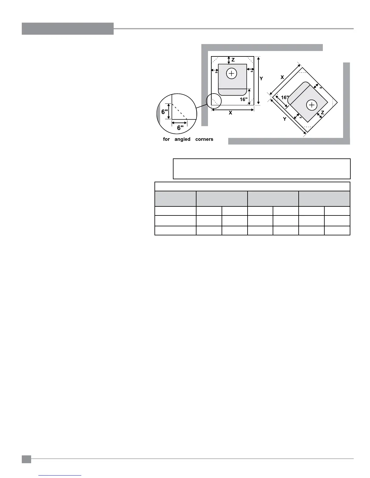 The rear clearance to combustibles is less than 6" (for corner installations the rear corners may
