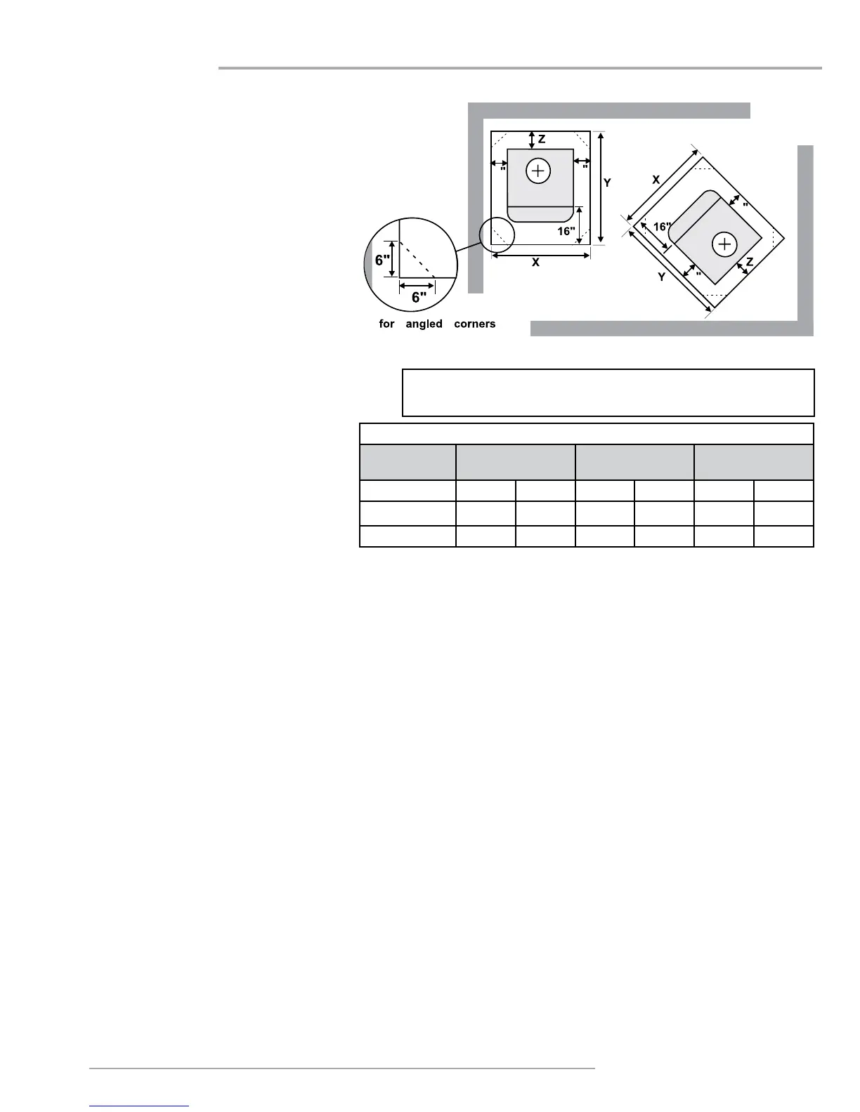 The rear clearance to combustibles is less than 6" (for corner installations the rear corners may