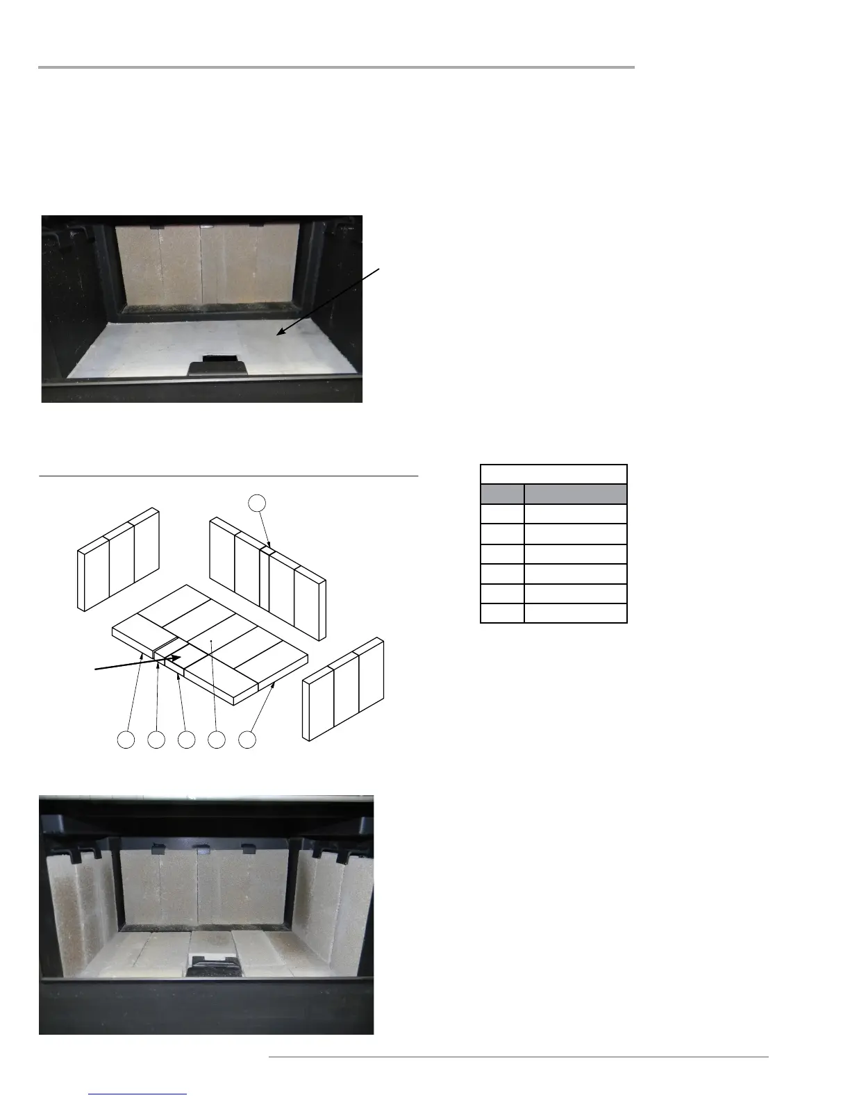 Firebrick is included to extend the life of your stove and radiate heat more evenly. Install all firebricks per the diagram below and place in their correct positions.