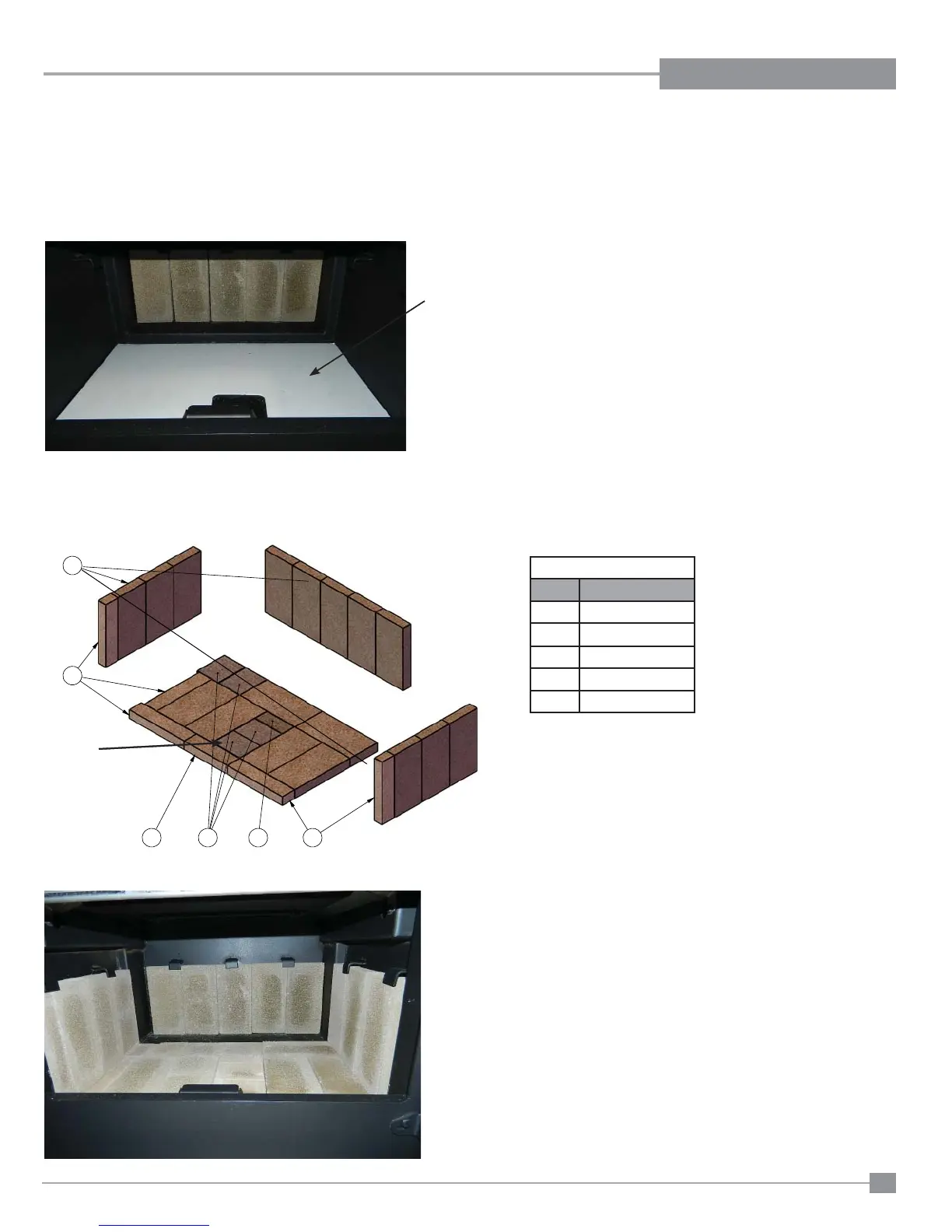 Firebrick is included to extend the life of your stove and radiate heat more evenly. Install all fi rebricks per the diagram below and place in their correct positions.