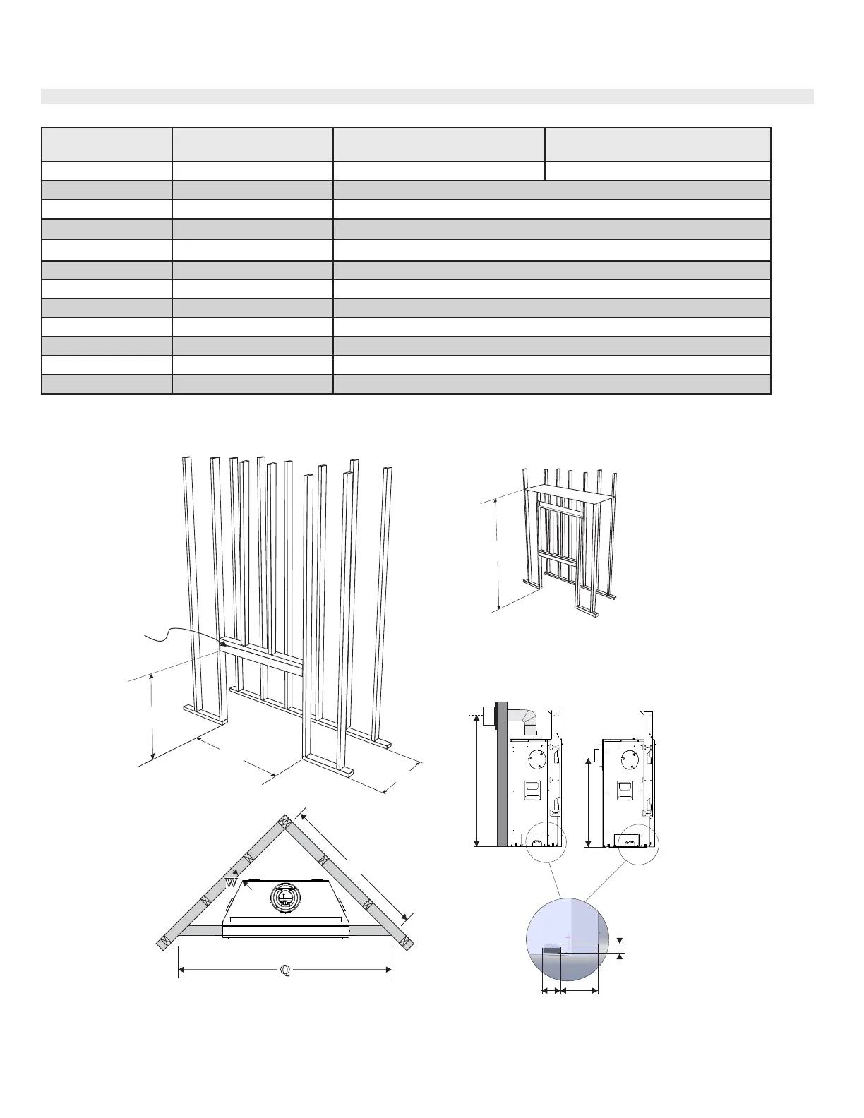 * Important: Framing height requires consideration of the hearth depth. Dimension N = N + the thickness of the installed hearth.