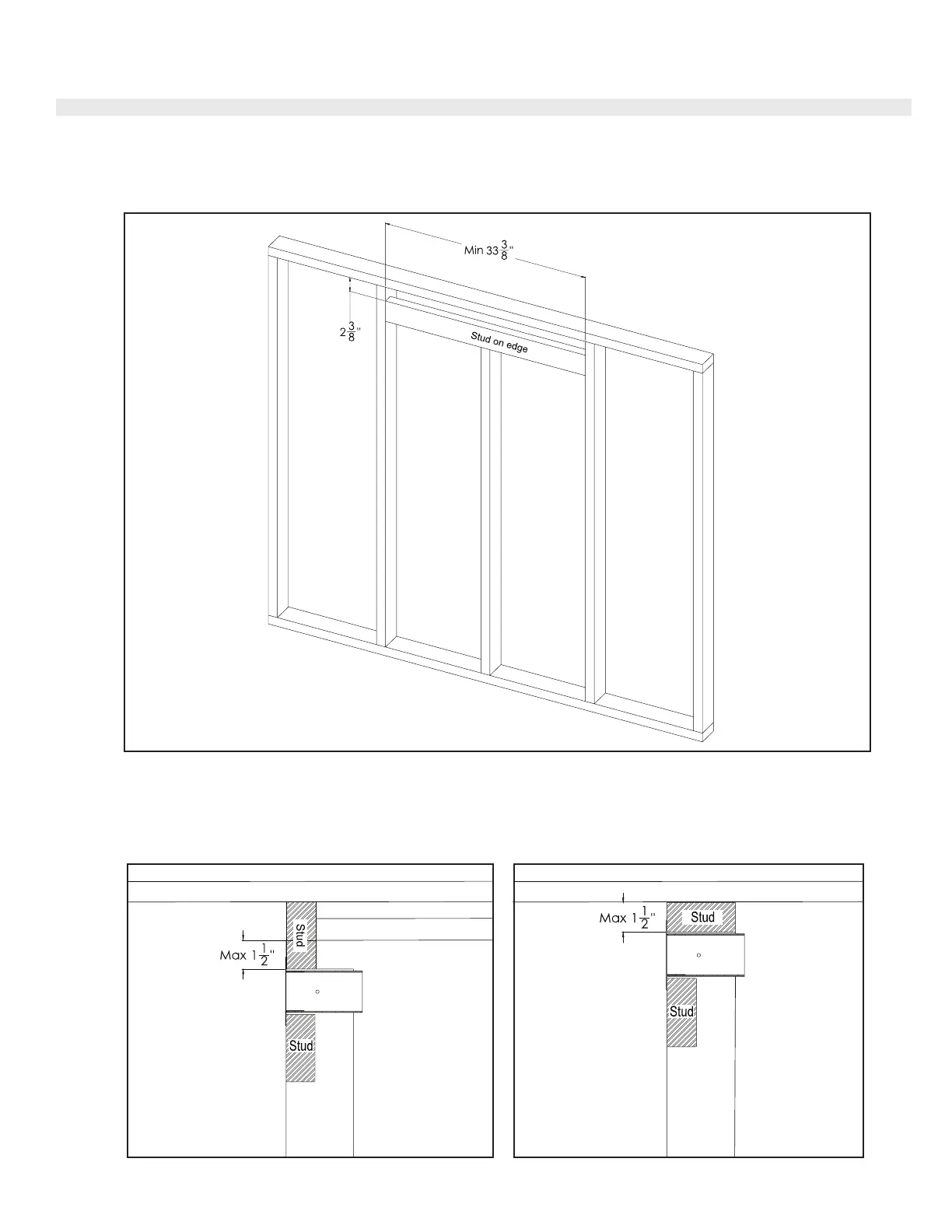 Framed Opening must be at least 2 3/8” tall, and at least 33 3/8” wide to accomodate the Chase vent. The top of the Chase vent opening