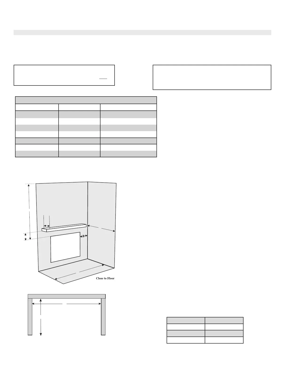 B: Sidewall 25" (635mm) Side of Fireplace Opening