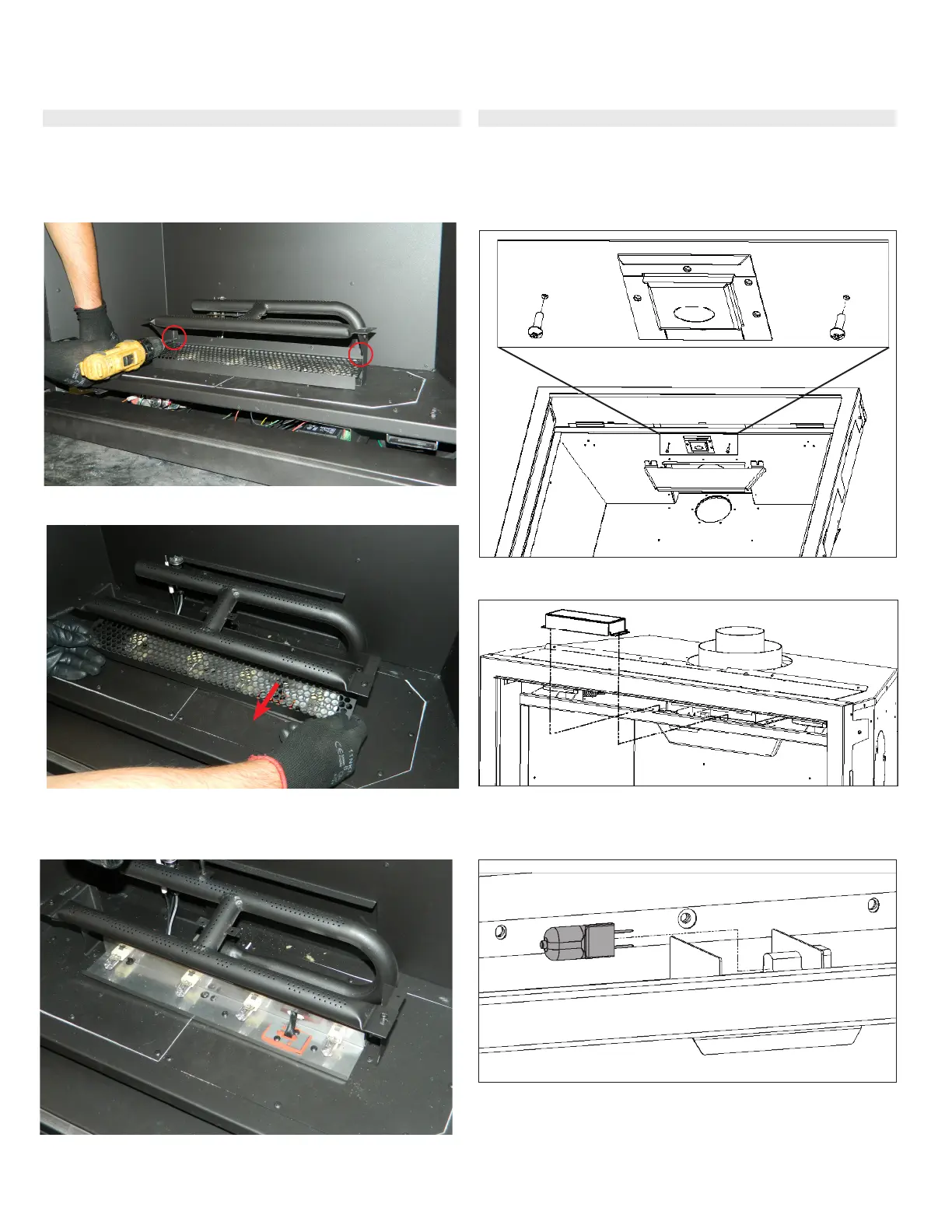 1. Remove screen, glass door, logs and any other media, log grate, and lower