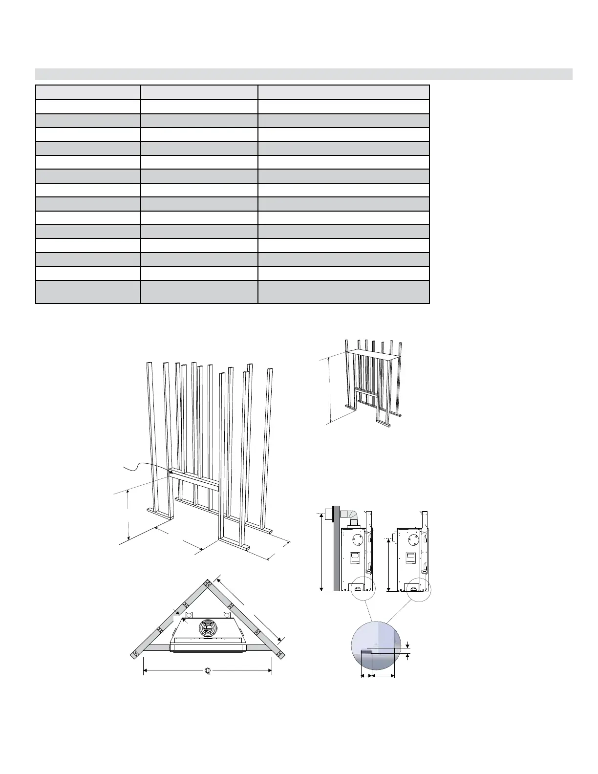 * Important: Framing height requires consideration of the hearth height. Dimension N = N + the thickness of the installed hearth.