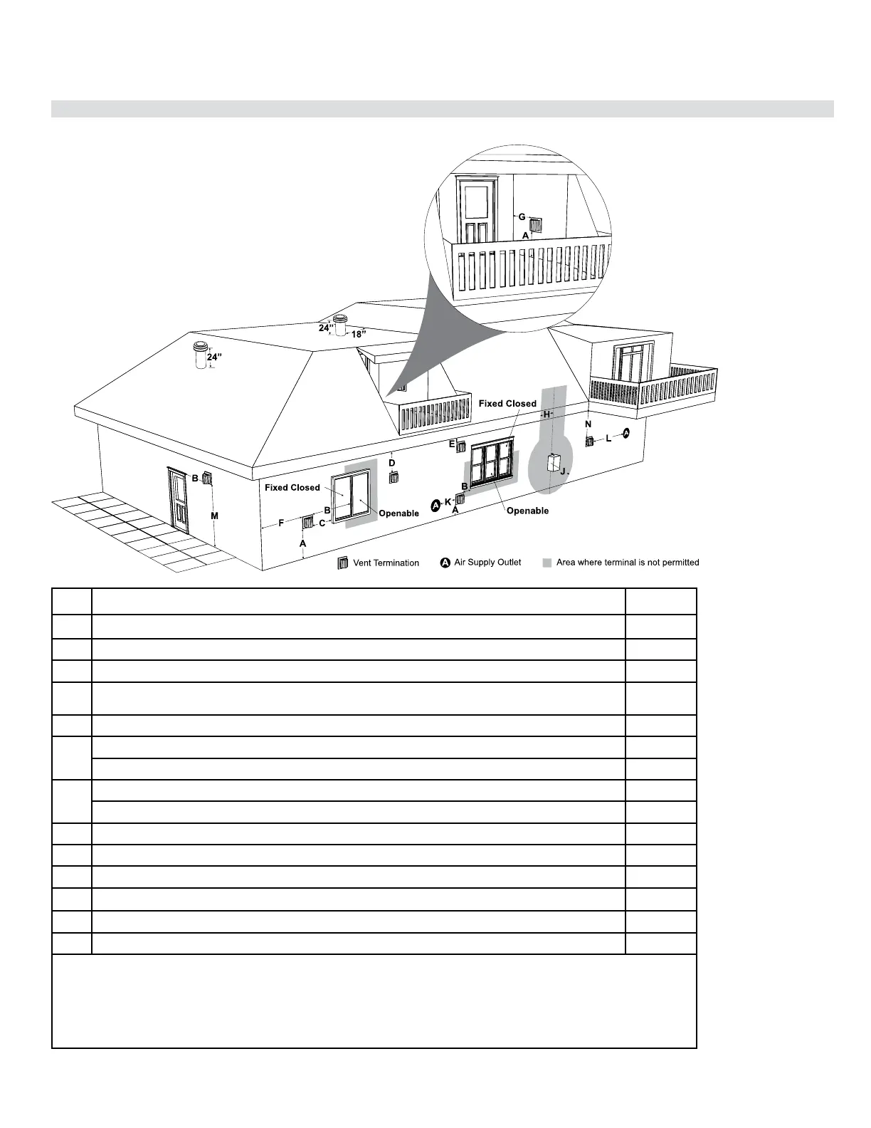 Clearance to non-mechanical air supply inlet to building or the combustion air inlet to any other appliance 9" (23cm)
