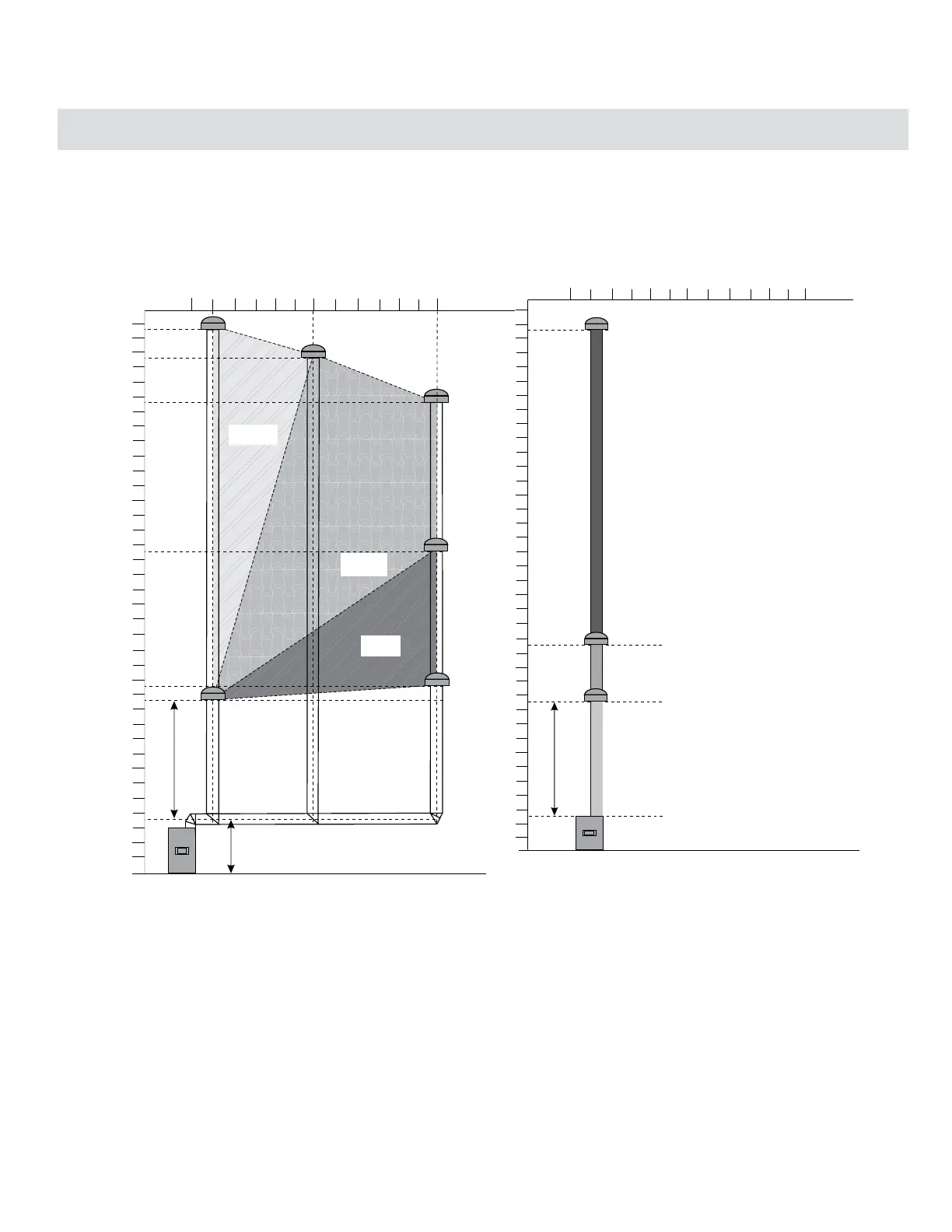 The shaded area in the diagram shows all allowable combinations of straight vertical and offset to vertical terminations, using two 90