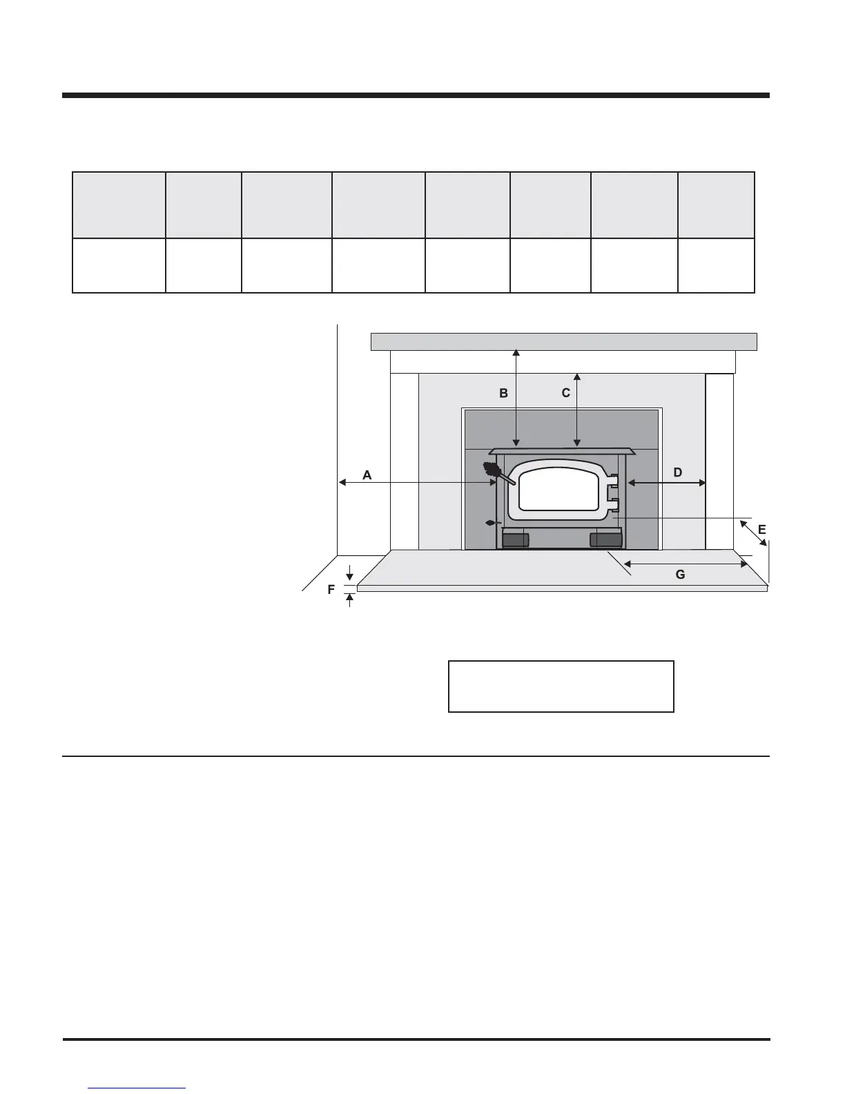 The minimum required clearances to combustible materials when installed into a masonry or factory built fi replace are listed below.