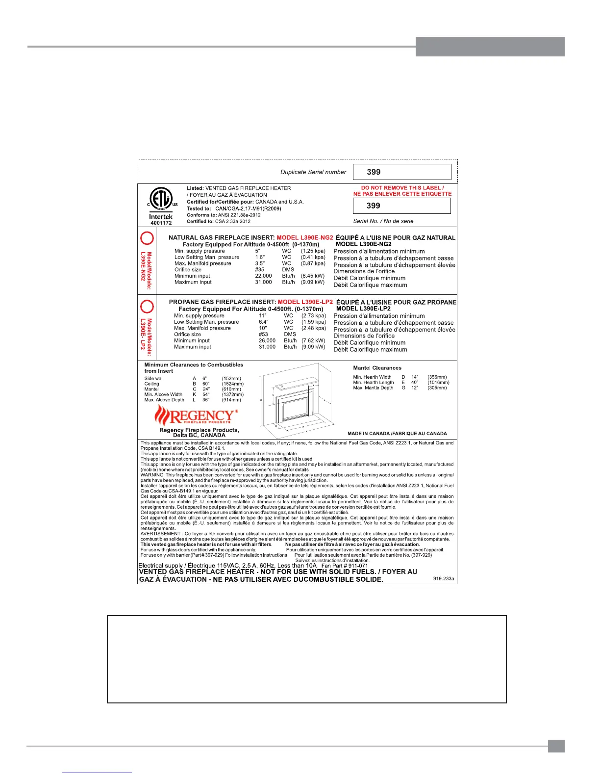 This is a copy of the labels that accompany each HZI390E Gas Insert.
