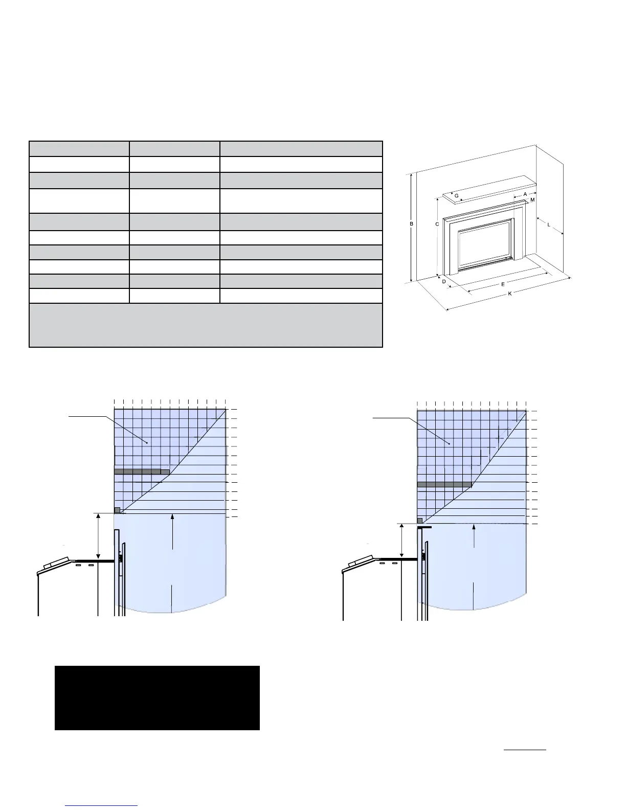 NOTE: 40” (1016MM) wide x 14” (356mm) deep hearth is required, unless the unit is raised