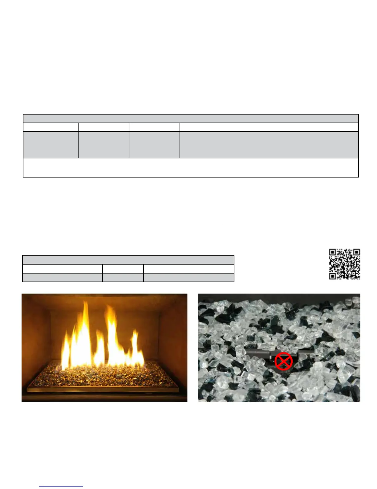 IMPORTANT NOTE: Only the supplied and approved pebbles / glass crystals are to be used with these replaces. Use of any other type of pebbles, glass