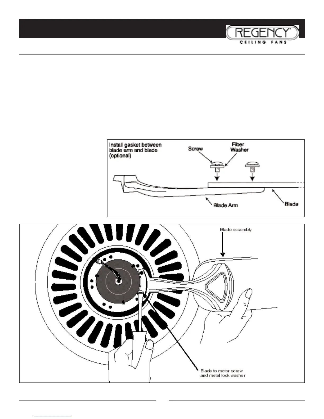 NOTE: Fans that have painted finishes are packed with gaskets that can be used between the blade arm and blade to help