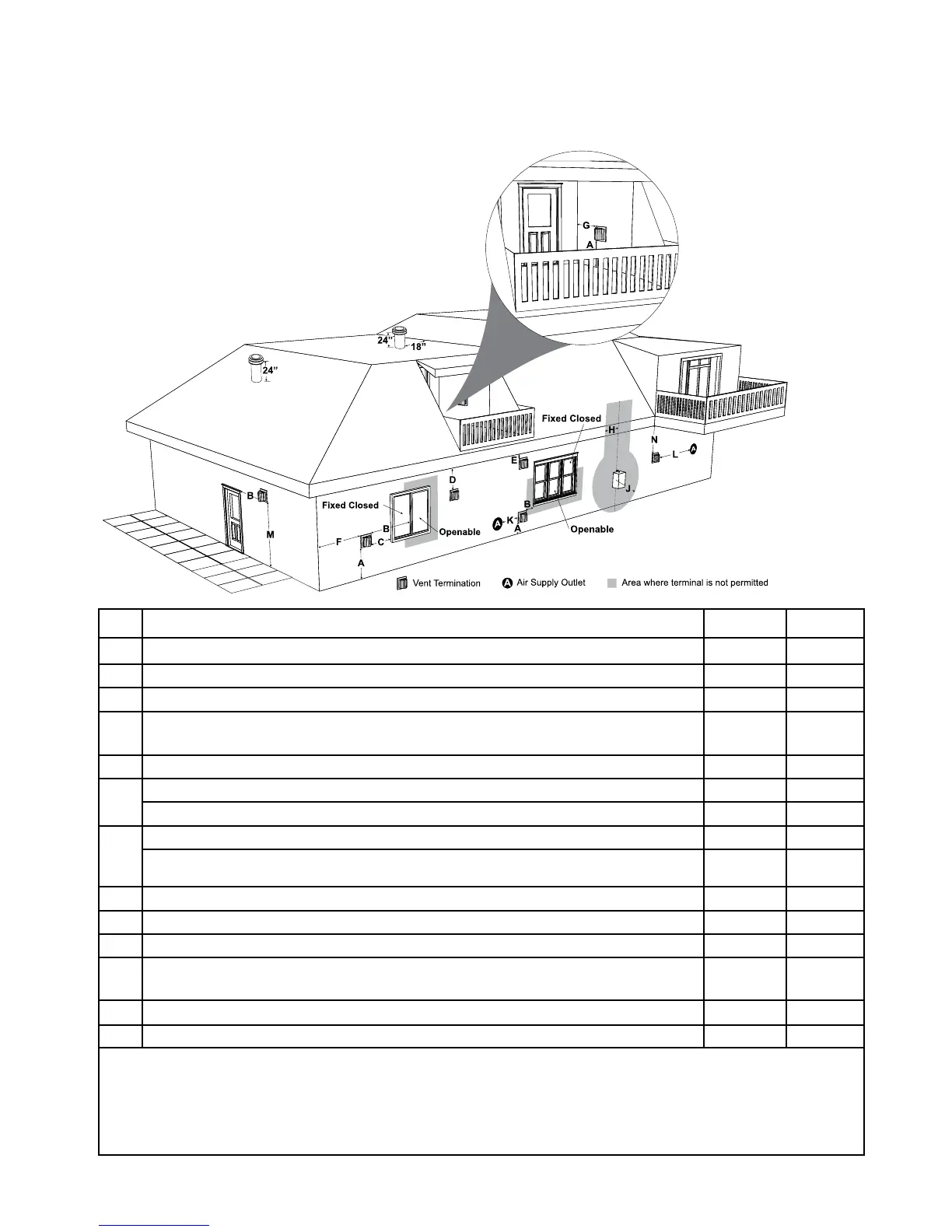 B Clearance to window or door that may be opened 12"(30cm) 9" (23cm)