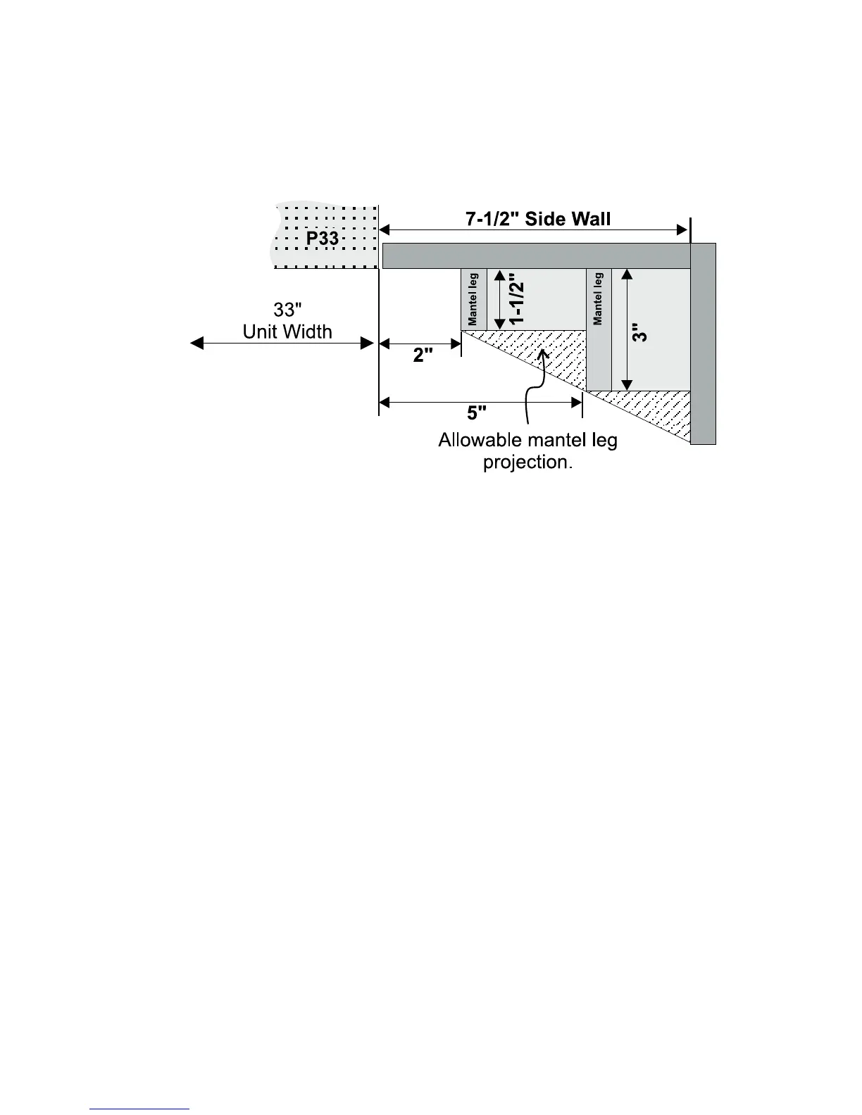 Combustible mantel leg clearances from side of unit as per diagram: