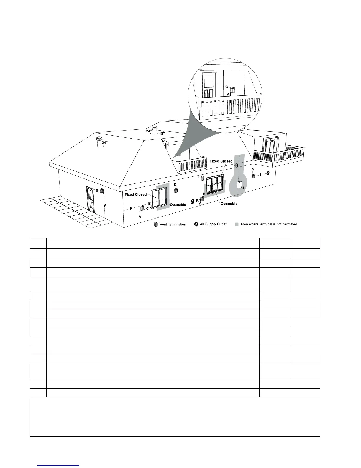 Clearance to non-mechanical air supply inlet to building or the combustion air inlet to any other appliance 12"(30cm) 9" (23cm)