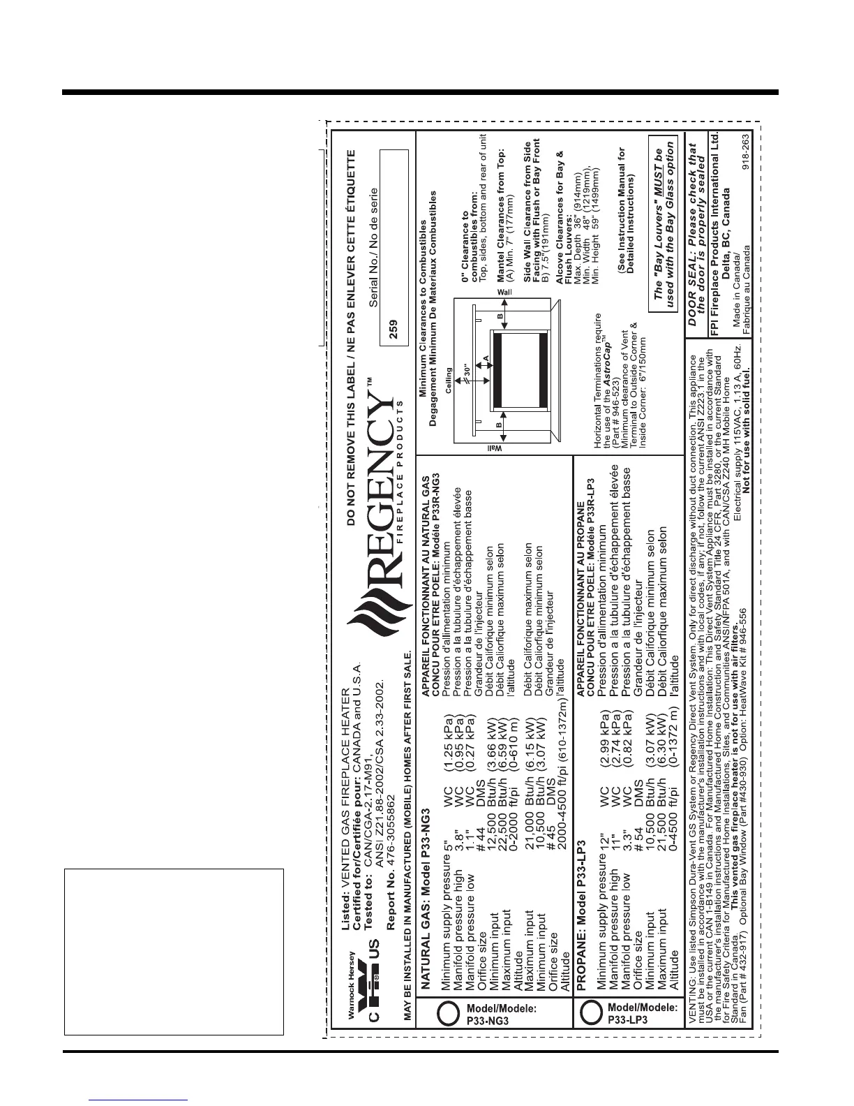 Regency P33-3 Zero Clearance Direct Vent Gas Fireplace