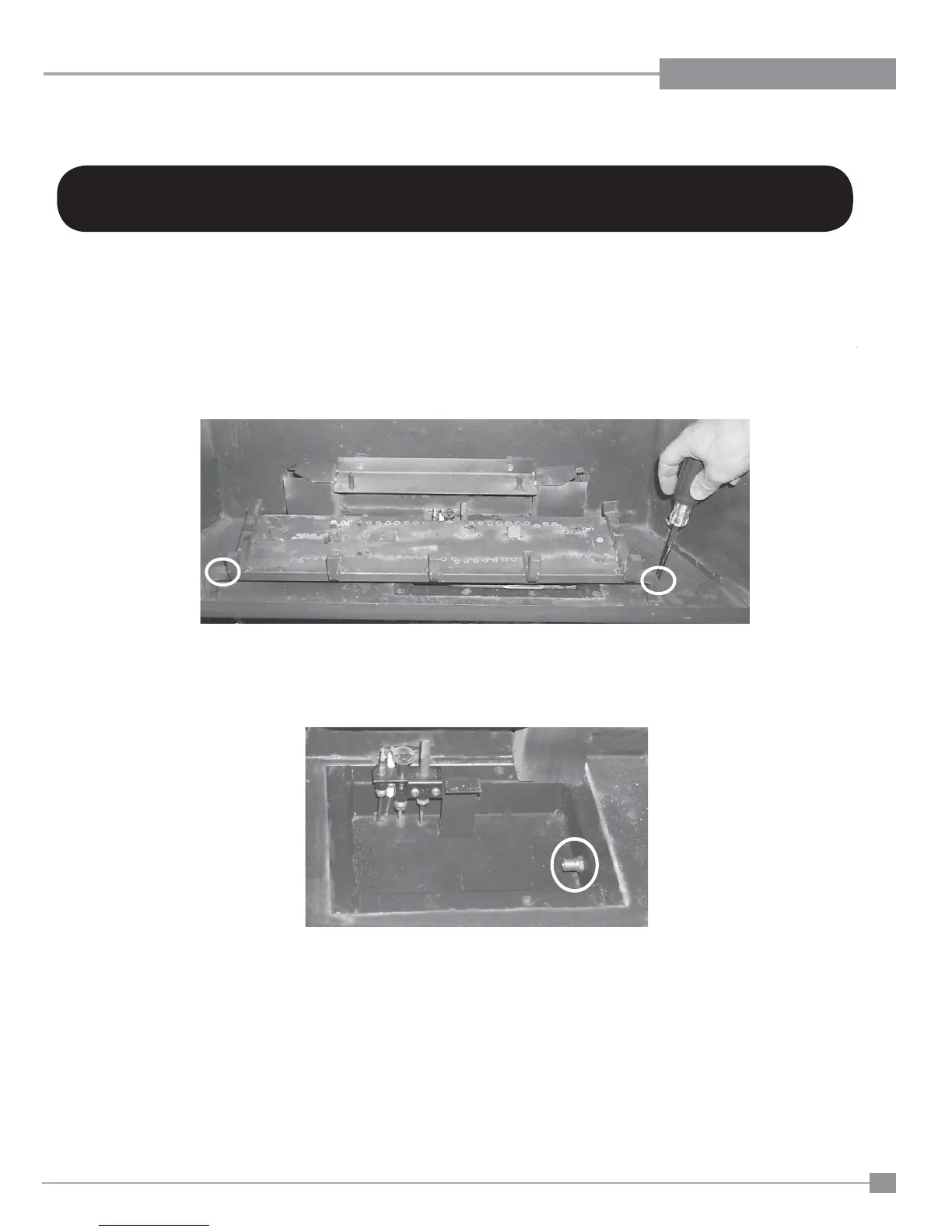 c) Remove the 2 screws holding the Burner Assembly to the fi rebox base.
