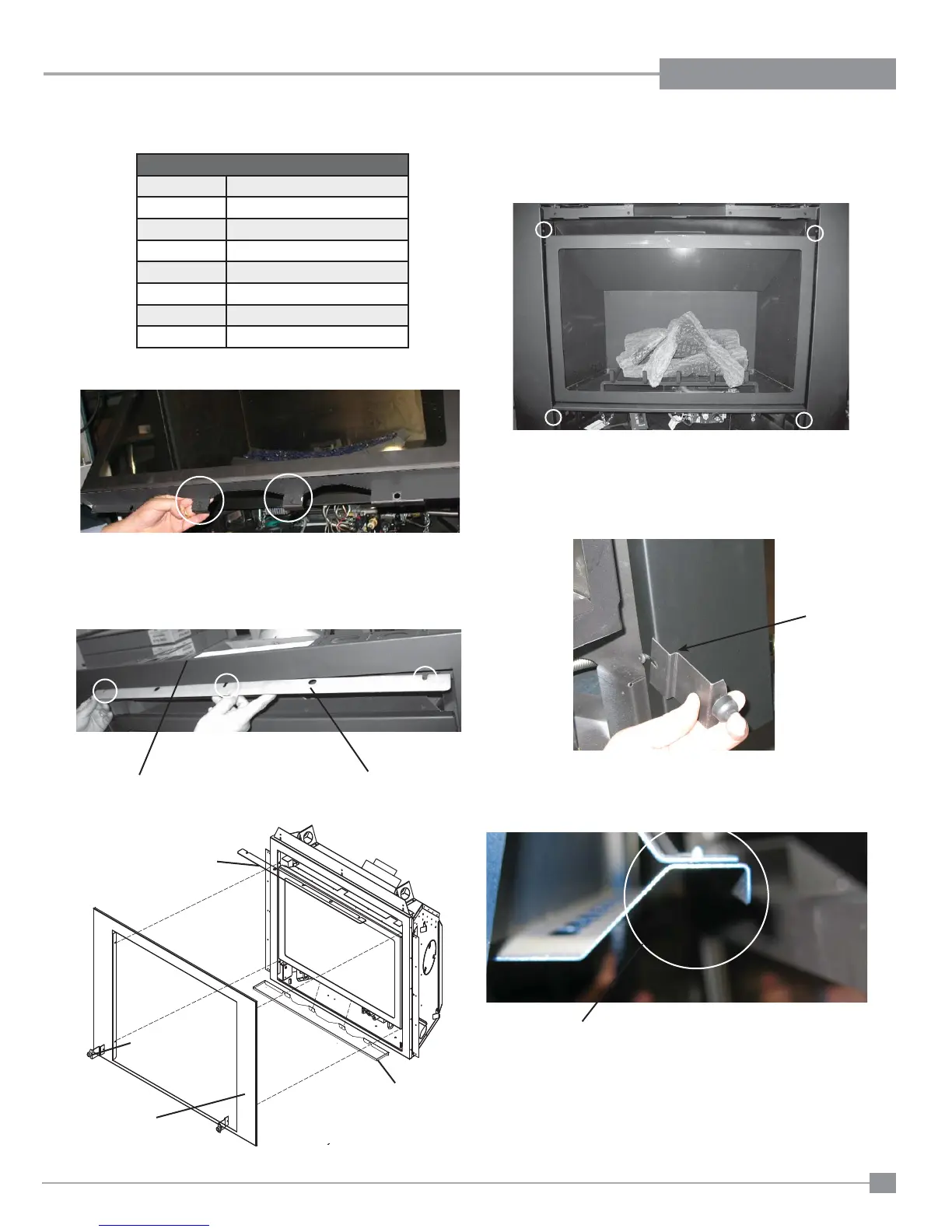 3) Loosen 4 phillips head screws located inside fi rebox, for screw locations