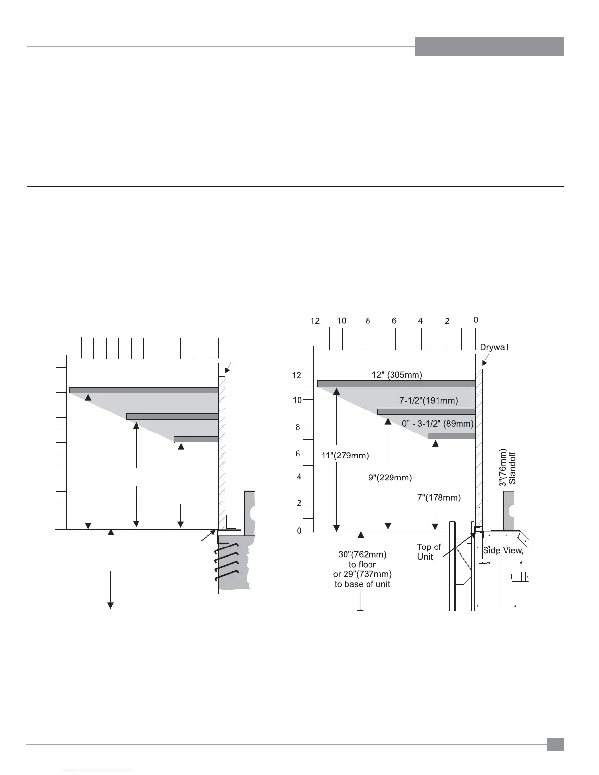Note: A non-combustible mantel may be installed at a lower height if the framing is made of metal studs covered with a non-combustible board.