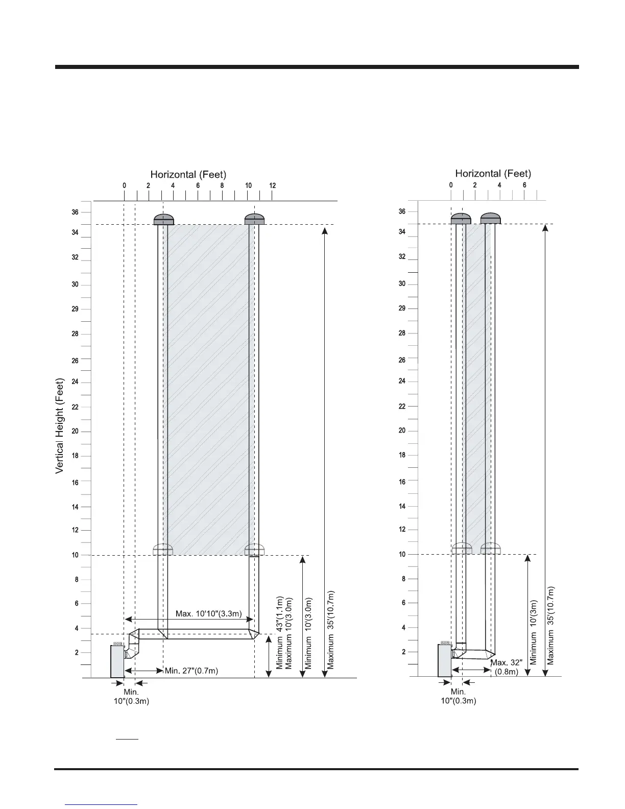 The shaded area in the diagram shows all allowable combinations of straight vertical and offset to vertical terminations , using three 90