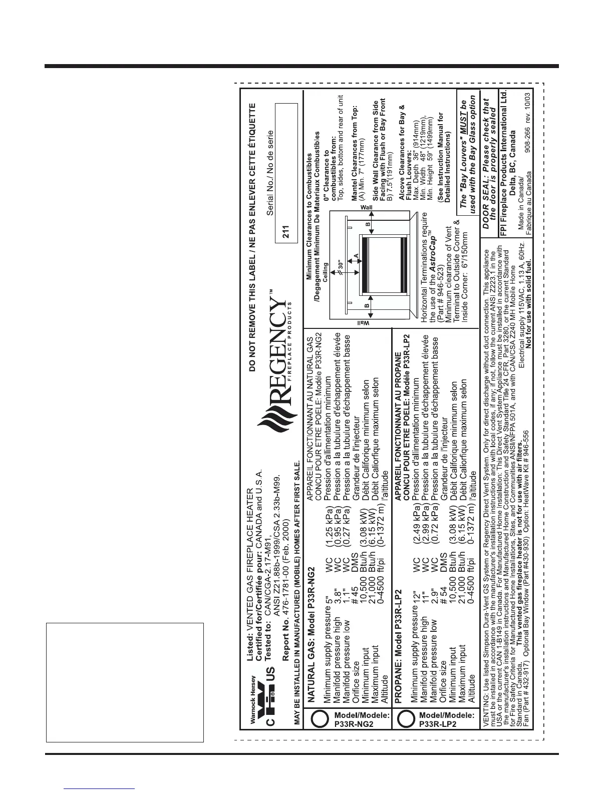 each P33R-2 Zero Clearance Direct Vent Gas