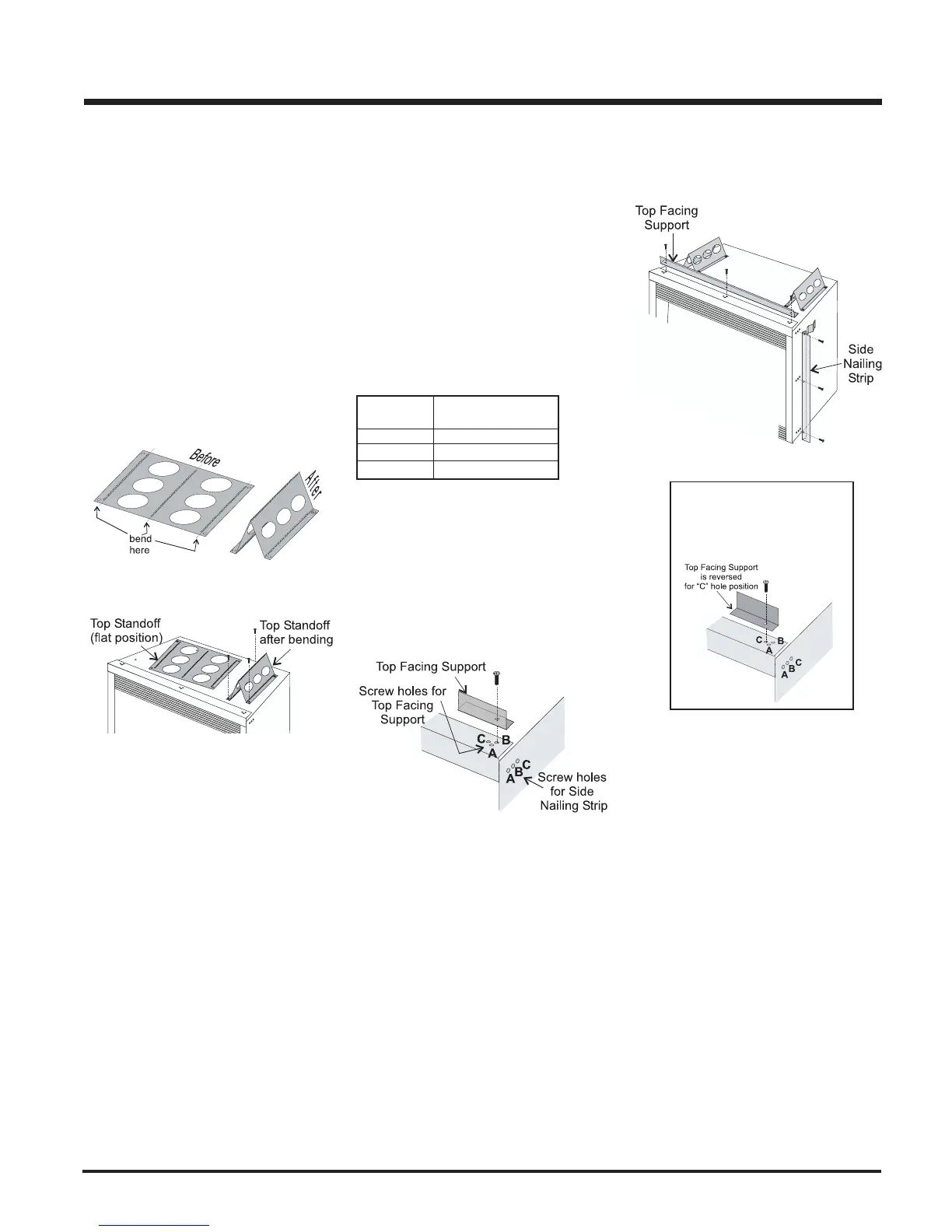 * For "C" screw position the top facing support