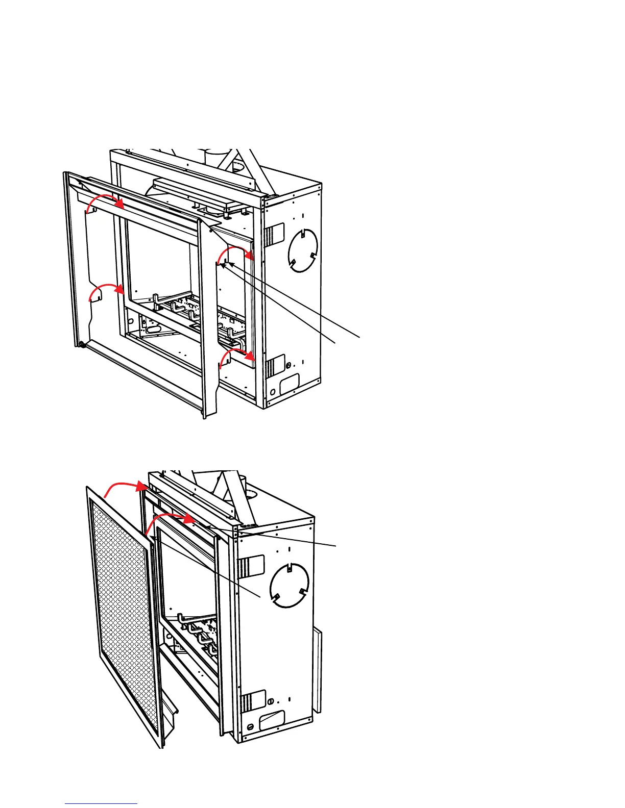 1. Hook the outer Vignette frame onto the unit. Brackets on the frame hook on to tabs in the