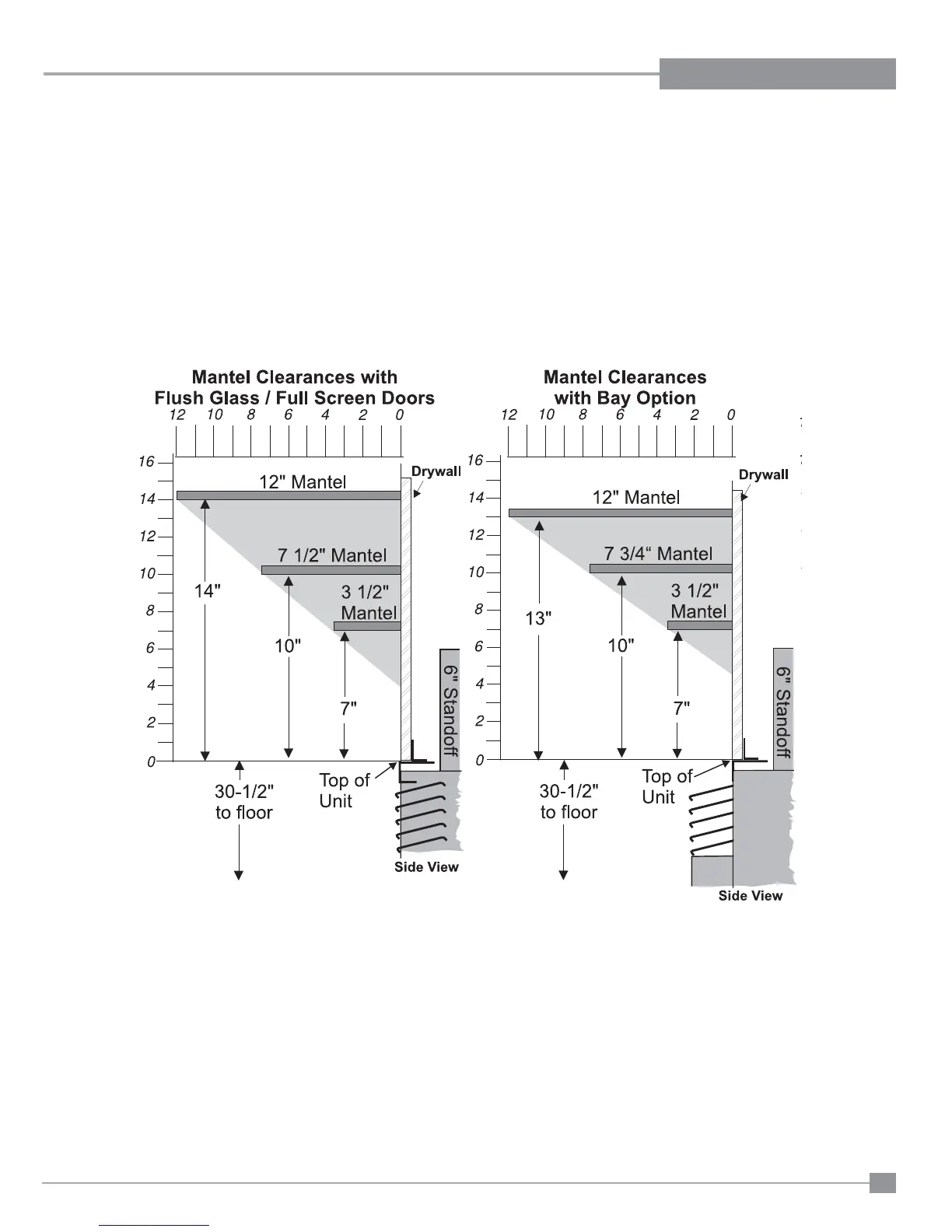 Mantel can be installed anywhere in shaded area or higher using the above scale.