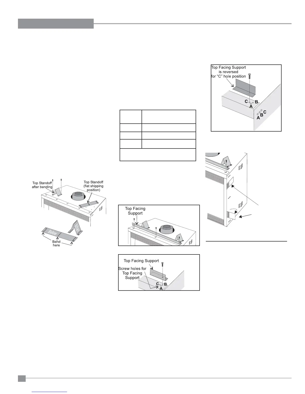 the unit. Use hole positions A, B, or C