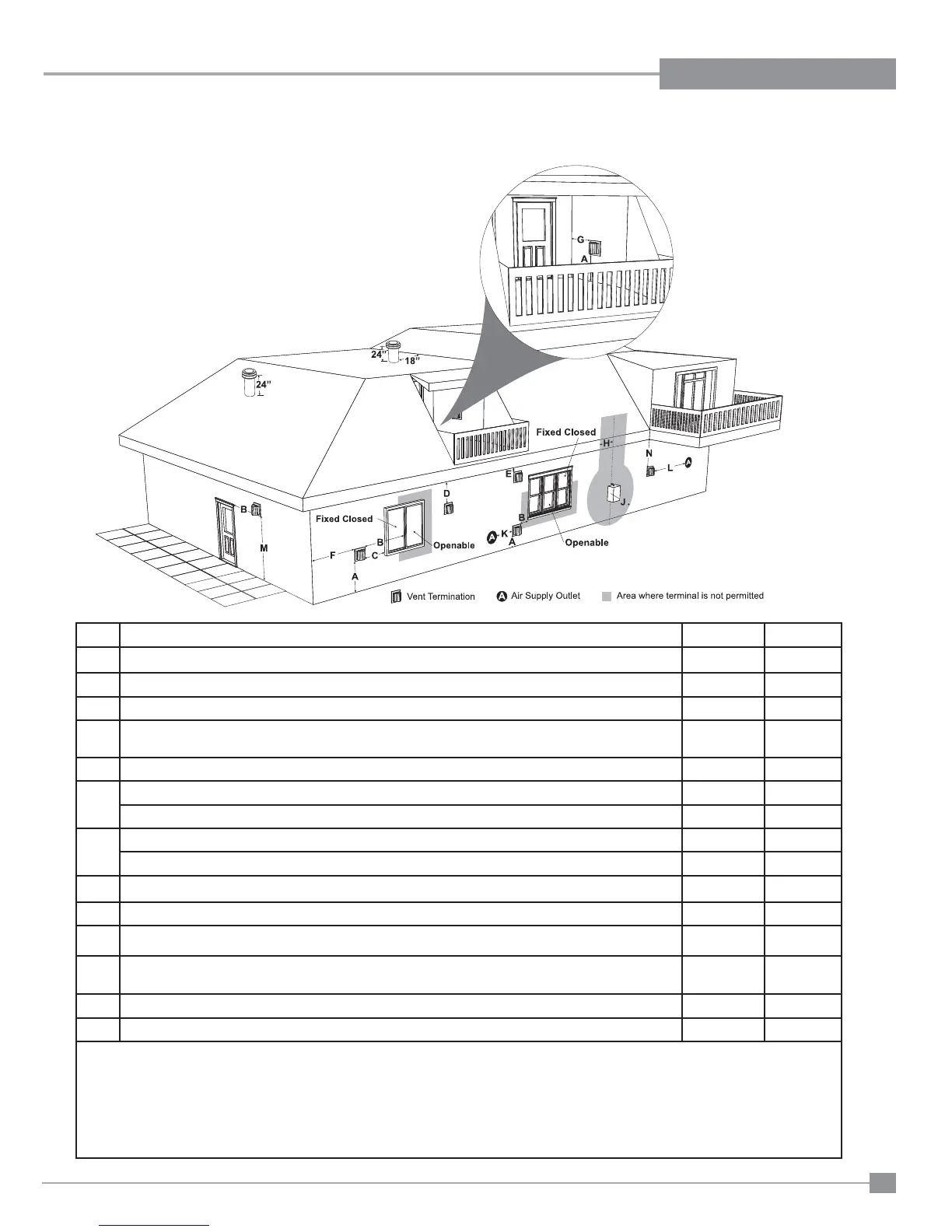 Clearance to window or door that may be opened 12"(30cm) 9" (23cm)