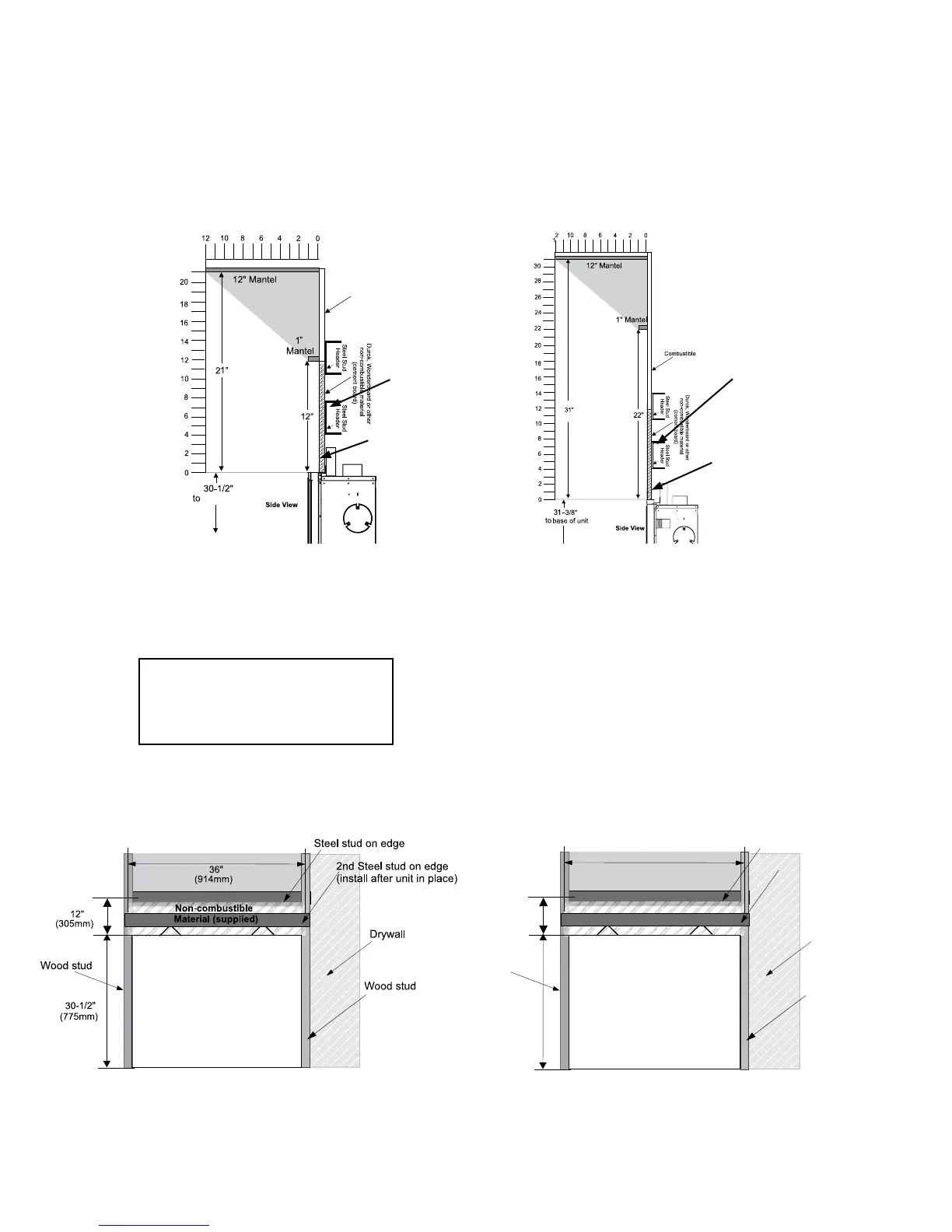 NOTE: If using ush louvers and safety screen the steel studs and non-combustible material are not required. Wood studs and drywall