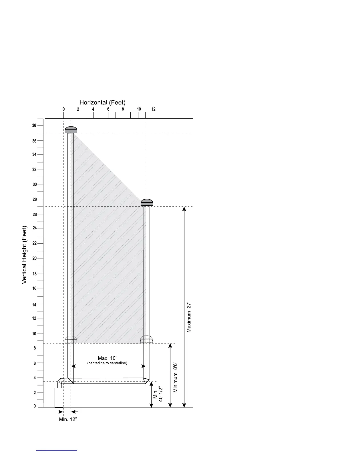 The shaded area in the diagram shows all allowable combinations of straight vertical and oset to vertical terminations, using two 90