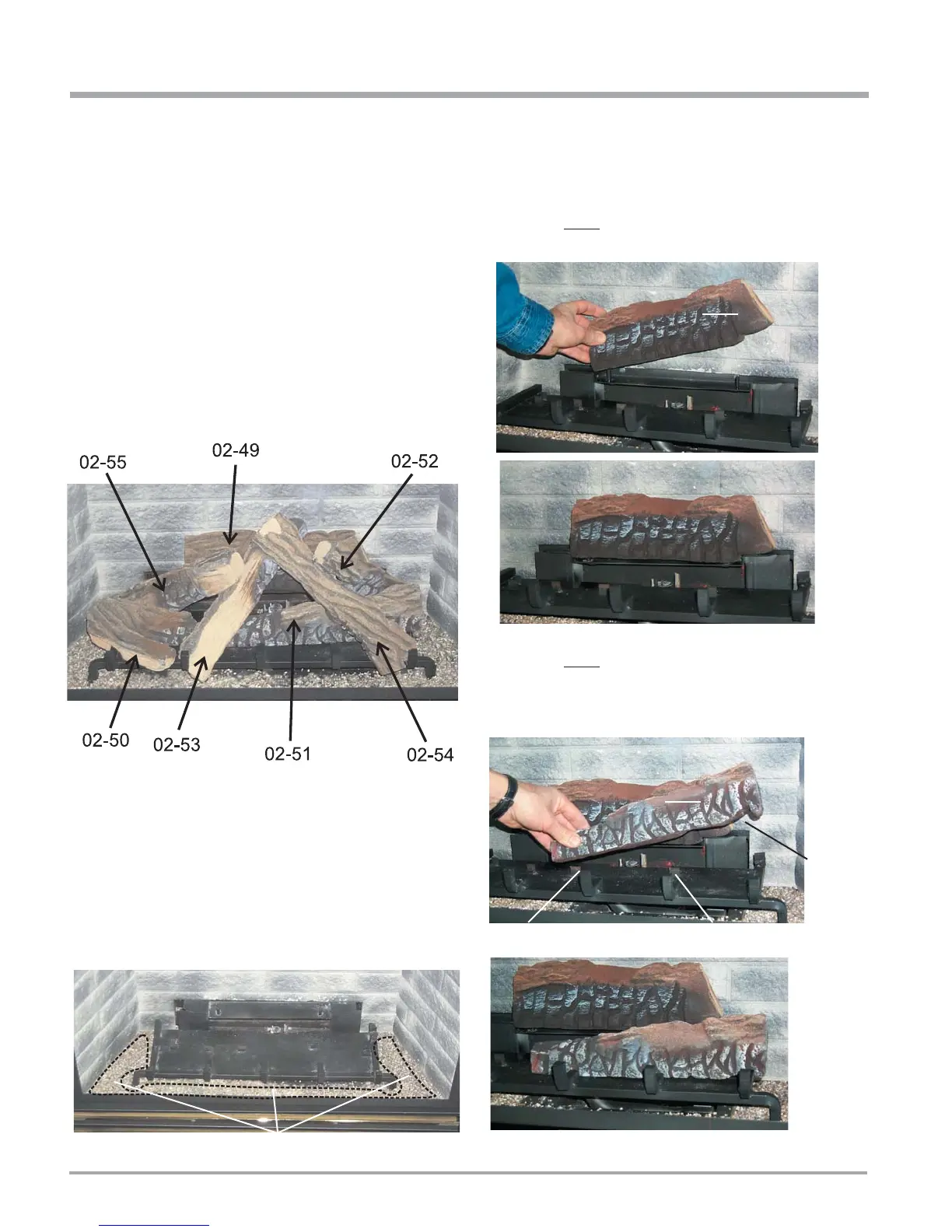 3) Place Log 02-49 on the rear log support pins with the fl at