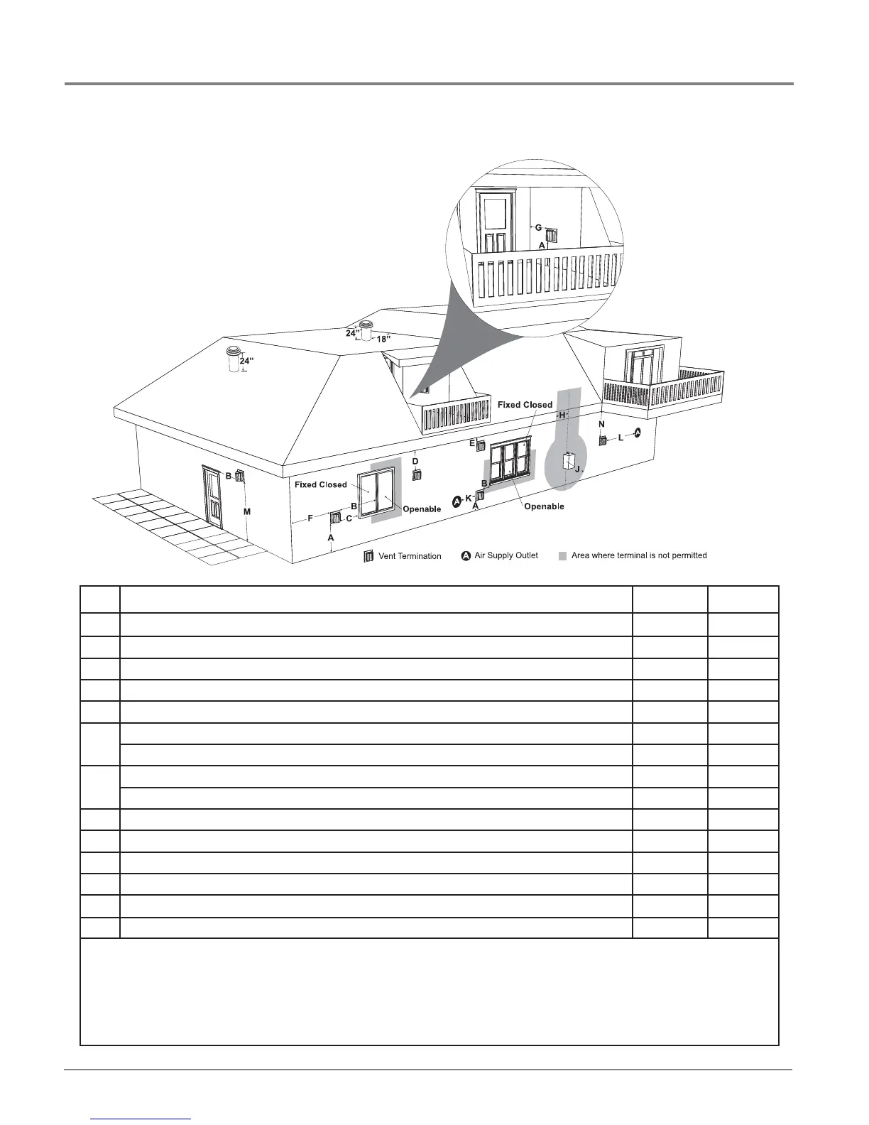 B Clearance to window or door that may be opened 12"(30cm) 9" (23cm)