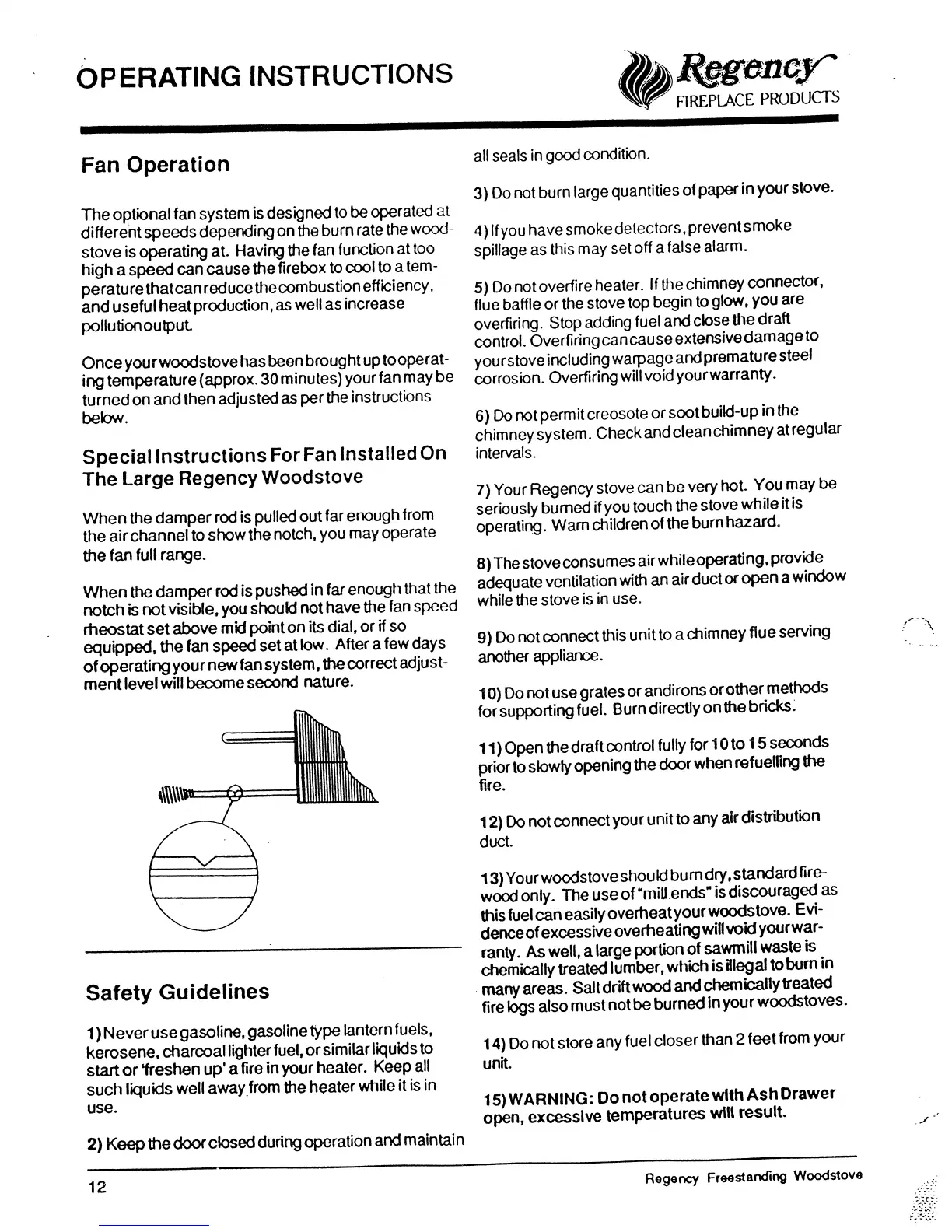 Regency R3 - Optional Fan Operation; Large Stove Fan Operation Instructions; General Safety Guidelines