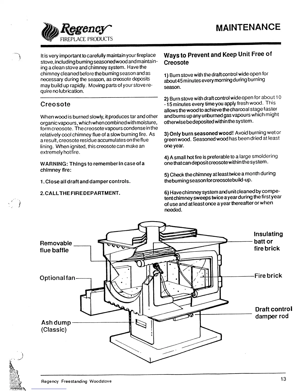 Regency R3 - Maintenance Procedures; Creosote Formation and Dangers; Preventing Creosote Buildup